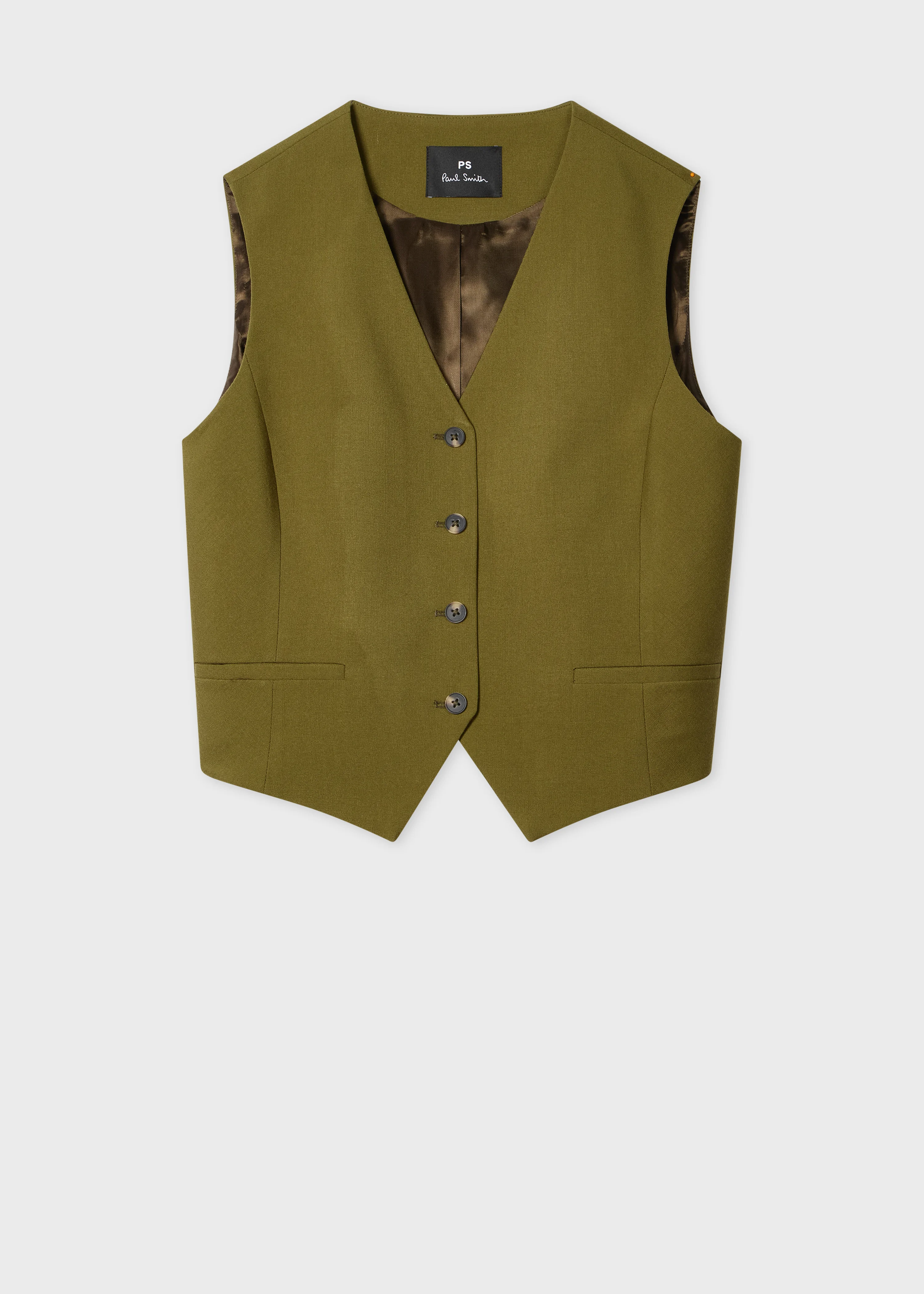 Made from premium wool, this olive green tailored-fit waistcoat is a versatile addition to any wardrobe. Featuring a classic silhouette with a contemporary twist, this piece can be styled for both formal occasions and smart-casual settings alike, in a classic waistcoat silhouette with a contrast four-button closure, subtle rear vent, faux pockets at the front, and a luxurious viscose lining. The Size Model wears a size 40 (UK 8) Model measures: Height 5’11’’ / 180cm | Chest 30½’’ / 78cm | Waist 24’’ / 61cm The Fit - Tailored-Fit is shaped for a defined silhouette through the body. Product Code: W2R-396J-T31053-34
