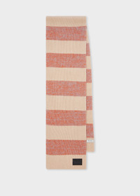 Women's Pink and Beige Lambswool-Blend Block Stripe Scarf