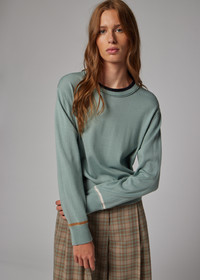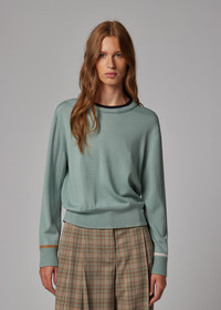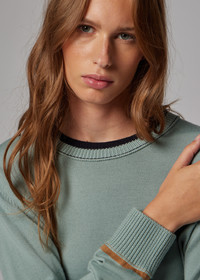 Made from lightweight Merino wool with a soft-handle finish, this sage blue crew-neck sweater features contrast tripping detailing on the collar and cuffs. Elevating your knit collection, pair this piece with soft, tailored pieces. The Fit - Regular-Fit is relaxed through the body. Product Code: W2R-793N-V31405-35