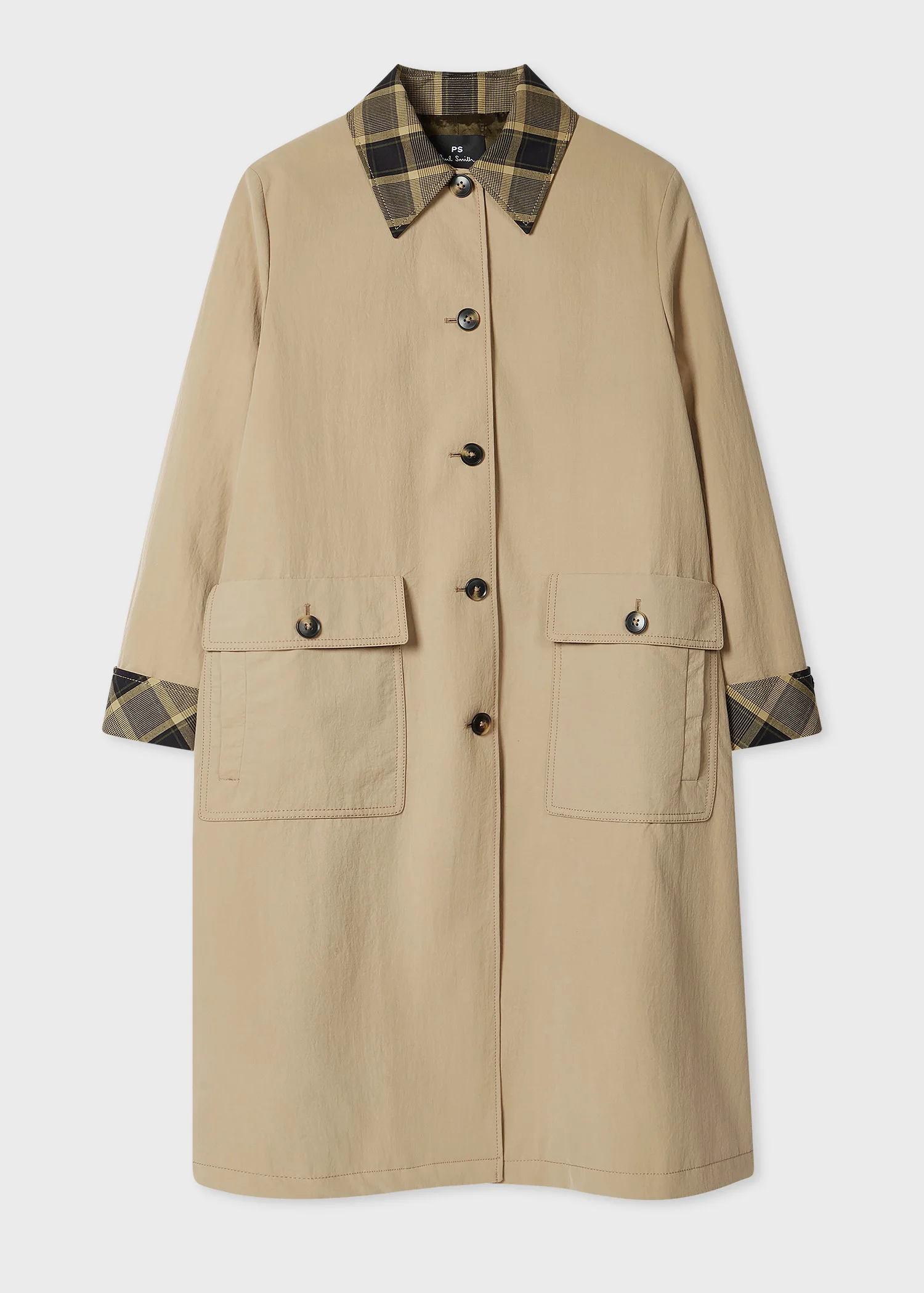 Women's Stone Nylon Mac with Contrast Check Trim