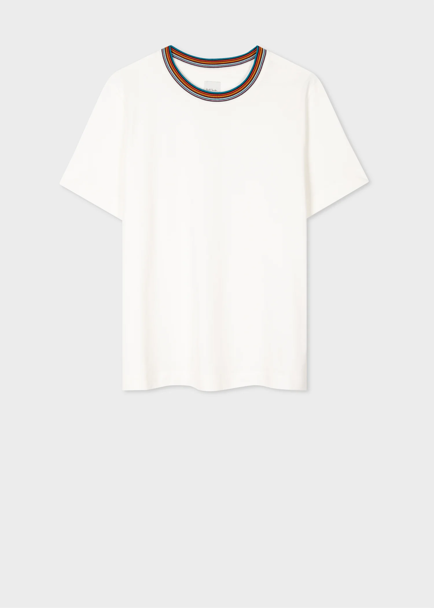 Made in Portugal from organically grown mercerised cotton, this crisp white T-shirt features our iconic 'Signature Stripe' on the collar - adding a flash of colour to this classic style. Complete with our Paul Smith signature logo on the back. The Fit - Regular-Fit is relaxed through the body. Product Code: W1R-059VB-N00084-01
