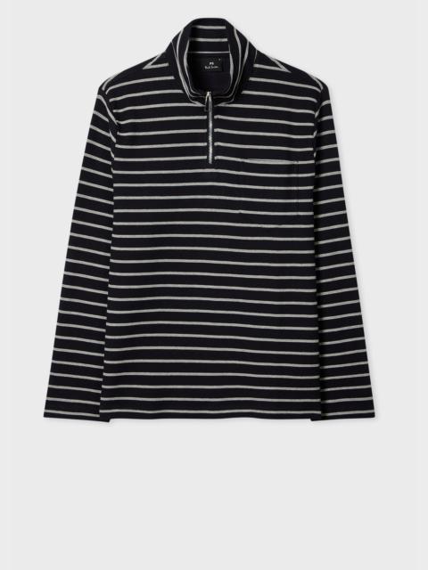 Navy Textured Stripe Zip Neck Sweatshirt