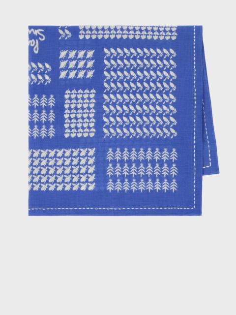 Blue Contrast Motif 'Bandana' Cotton Scarf