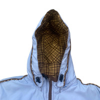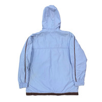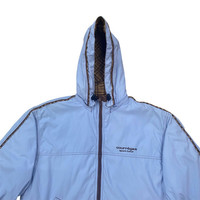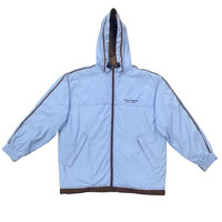 Vintage Courrèges Paris zip-up hooded jacket in a standout powder blue with chocolate brown trim. Features embroidered branding on the chest, two front pockets, and a full zip closure. Classic 90s sporty aesthetic with elastic cuffs and hem. Lightweight and great for layering in spring or fall. • Tagged Size: 11 (Fits like Men’s Small-Medium – check measurements) • Pit to Pit (Chest Width): 24 inches • Length: 28 inches • Shoulder Width: 21 inches • Sleeve Length: 22 inches • Condition: Good vintage condition – minor stain present (likely washable) Rare piece from Courrèges with retro flair—perfect for archive streetwear fits or collectors. #Courreges #VintageCourreges #FrenchStreetwear #90sStyle #RetroJacket #GrailedVintage #CourregesParis #ArchiveFashion #StreetwearFinds #Y2KStyle