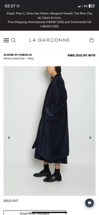 ā¼ļøTHIS IS USED STUFF. DONāT EXPECT IT TO BE 100% LIKE NEW CONDITION AND PLEASE CHECK OUT THE MEASUREMENTS CAREFULLY BEFORE MAKE ANY OFFERā¼ļø Album di Famiglia Cotton Velvet Loose Coat in Navy Blue ⢠Notch Lapel ⢠Drop Shoulders with Long Sleeves ⢠Twin Patch Pockets at Front ⢠Button Front Closure ⢠Slit at Center Back ⢠Medium Weight Album di Famiglia designs pure and refined, avant-garde shapes, meant to accompany the wearer throughout all aspects of life, allowing certain ease in dressing. Each garment is taken care of, designed, cut, and sewn in their workshop, in the town of Lomazzo, Italy. Using natural materials like cotton, wool, and alpaca to name a few, their garments are made to last and to be loved. Fabric: 97% Cotton, 3% Elastane; Lining: 100% Cotton Fit: Oversize Care: Machine Wash Cold Origin: Made in Italy šBust Width : 23 Inches. šShoulder Width : 25 Inches. šWaist Width : 23 Inches. šSleeve Length : 22.5 Inches. šLength : 39 Inches. šCondition : 9/10 (PAYMENT) -Accept PAYPAL & STRIPE (SHIPPING) -We ship to worldwide with tracking number. -There are two types of shipping that we use: 1. Standart Shipping (Malaysia Flexipack), it may take 10-23 working days depend on your location. 2. Express Shipping (DHL), it may take 5-7 working days depend on your location. -For Express Shipping you need to add $5 USD. -Item will be shipped within 2-4 working days after payment received. -Please leave your contact number. Shipping Company always need your contact number to make sure delivery process going smoothly. (IMPORTANT) -Please read details ( You can ask for more clear information about the item) and see the pictures carefully. -Make sure you satisfied with the item before make any offer/deal because we donāt accept any RETURNS, EXCHANGES and REFUNDS after transaction. -For more information you can direct message us.