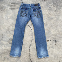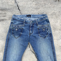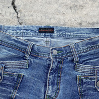 Authentic Morgan Homme denim featuring exquisite craftsmanship and vintage appeal. • Signature button detailing along both side seams • Intricate embroidered back pockets • Premium mid-wash blue with tasteful fading • Tagged size 34 • Measurements: Waist 34”, Length 42”, Inseam 30”, Hip 18.2”, Leg Opening 9.5”, Front Rise 11.5” Condition: Distressed at the back hem — intentional and enhances the vintage aesthetic. Cut: Straight fit flared leg with a sleek silhouette. great for stacking over sneakers or boots. A standout piece for denim collectors and fashion enthusiasts alike. Rare find — elevate your wardrobe. #MorganHomme #MorganDeToi #FrenchMenswear #ParisianStyle #ModernTailoring #MenswearEssentials #SmartCasual #EuropeanFashion #ContemporaryMenswear #MinimalStyle #GrailedMenswear #ChicStyle #ElevatedBasics #TailoredLook #CleanFit #RefinedStyle #MensStyleEdit #ArchiveMenswear #QuietLuxury #UnderstatedStyle