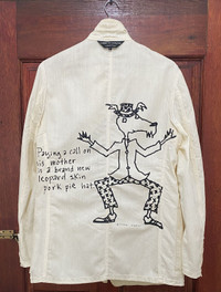Comme de Garçon Homme Plus Collection, Spring/Summer 2003 In collaboration with CDG, Stadler created Cosmo, a canine dandy inspired by his 2002 Chronicle book, “What Willie Wore”. Four Cosmo cartoons were printed on 80 different pieces in this collection Tag : COMME des GARÇONS HOMME PLUS Size : L Made : Japan Armpit to armpit : 22 inches Shoulder to Length : 32 inches Sleeve : 26 inches Condition : 9.5/10 very good condition *Please compare the measurement with your garment before purchase this item PAYMENT : PAYPAL ONLY SHIPPING : DHL EXPRESS SHIPPING (estimated 1-6 days delivery time depend on location & custom clearance) PLEASE LEAVE THE CONTACT NUMBER as the shipping company always need the phone number for delivery process NO REFUND NO RETURN Please bear in mind that this item had been used previously. Sign of wear and ages might be available on it. All item will be described as is Please check all pictures and ask question for any additional info before purchase. Some items are USED, VINTAGE & PRE LOVED items, so dont expect it to be like NEW condition. Dont hesitate to