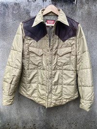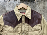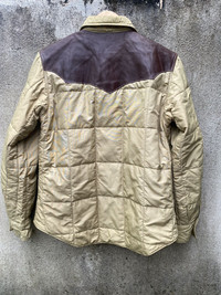 A Steerhide leather Western yoke diamond quilted jacket that is a staple of Americana casual style during the fall and winter. The outer material is N/C cloth made of 60% cotton and 40% nylon, commonly known as "Rokuyon Cloth". The densely woven fabric combines the breathability of cotton with the water repellency of nylon. A high-performance material that has existed since the 1970s, unlike modern high-tech materials. The shoulders are switched with tan steerhide for comfort and protection. Follow me and check my other items 🔥My price drop regularly so add this item to your grails. 🔥But don’t wait for price drops, send me an offer Tag : Alpha Industries Size : M Armpit to armpit : 21 inches Shoulder to Length : 29 inches Condition : good condition just wash tag cut *Please compare the measurement with your garment before purchase this item PAYMENT : PAYPAL ONLY SHIPPING : DHL EXPRESS SHIPPING (estimated 1-6 days delivery time depend on location & custom clearance) PLEASE LEAVE THE CONTACT NUMBER as the shipping company always need the phone number for delivery process NO REFUND NO RETURN Please bear in mind that this item had been used previously. Sign of wear and ages might be available on it. All item will be described as is Please check all pictures and ask question for any additional info before purchase. Some items are USED, VINTAGE & PRE LOVED items, so dont expect it to be like NEW condition. Dont hesitate to