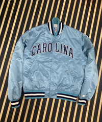 Vintage 90's University of North Carolina Tar Heels jacket. Super classic, rare find in the beautiful Carolina blue colorway. Starter, Made in USA. Follow me and check my other items 🔥My price drop regularly so add this item to your grails. 🔥But don’t wait for price drops, send me an offer Tag : Starter Size : L Armpit to armpit : 25 inches Shoulder to Length : 25.5 inches Sleeve : 26 inches Condition : good condition just stain only *Please compare the measurement with your garment before purchase this item PAYMENT : PAYPAL ONLY SHIPPING : DHL EXPRESS SHIPPING (estimated 1-6 days delivery time depend on location & custom clearance) PLEASE LEAVE THE CONTACT NUMBER as the shipping company always need the phone number for delivery process NO REFUND NO RETURN Please bear in mind that this item had been used previously. Sign of wear and ages might be available on it. All item will be described as is Please check all pictures and ask question for any additional info before purchase. Some items are USED, VINTAGE & PRE LOVED items, so dont expect it to be like NEW condition. Dont hesitate to