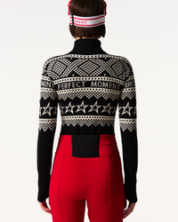 The Intarsia-Knit Merino Wool Bodysuit is a statement-making base layer with a sleek, body-hugging silhouette. Featuring a high mock neck, long sleeves with cut-out shoulders, and a bold snowflake intarsia, it brings graphic impact to performance knitwear. Crafted from soft, breathable Merino wool with a secure snap closure, it’s ideal for layering under ski gear or styling solo for apres. Fitted Snap closure Mockneck Long sleeves This knitwear is delicate. Please treat with caution as abrasion can damage the fabric. May pill slightly, this is natural with fine knit fabric Imported Product Code: W30012502291 Materials & Care Materials - 100% Merino wool Care - Hand wash cold separately - Do not bleach - Lay flat to dry - Cool iron if needed or dry clean