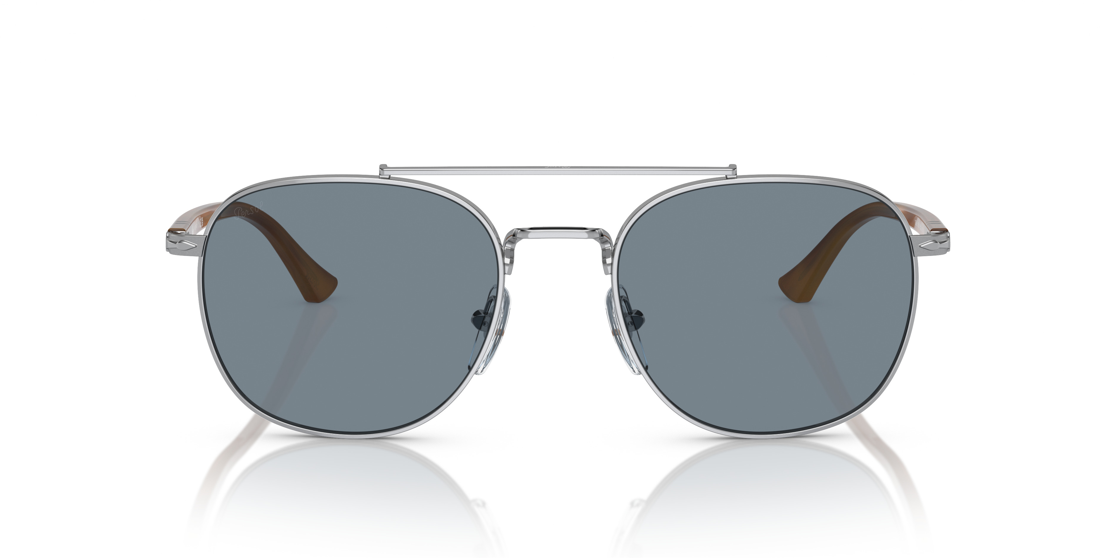 Easy-to-wear metal shape with a double bridge paired with acetate temples available in five colors, and premium barberini lenses with two polarized options . MODEL CODE: PO1006S 518/56 55-20 FRONT COLOR: Silver LENS COLOR: Light Blue LENS MATERIAL: Crystal FRAME MATERIAL: Metal FIT: Regular Fitting BRIDGE CHOICE & NOSEPAD: Adjustable Nosepads MADE IN: Italy