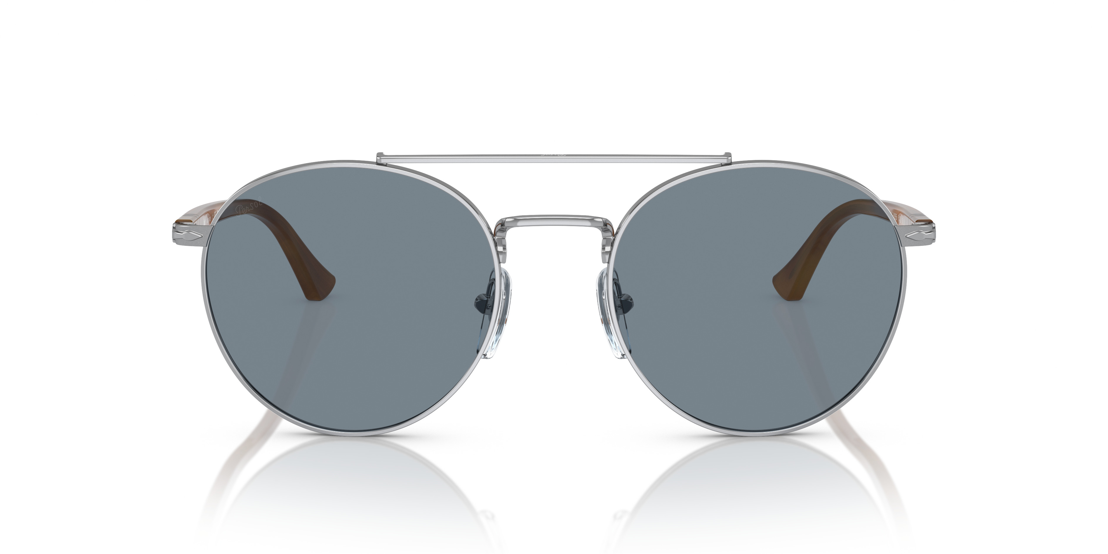 Easy-to-wear round metal shape with a double bridge paired with acetate temples available in five modern colors, and premium barberini lenses. The style is enriched by full-acetate temples with the iconic arrow and Meflecto. MODEL CODE: PO1011S 518/56 54-20 FRONT COLOR: Silver LENS COLOR: Light Blue LENS MATERIAL: Crystal FRAME MATERIAL: Metal FIT: Regular Fitting BRIDGE CHOICE & NOSEPAD: Adjustable Nosepads MADE IN: Italy