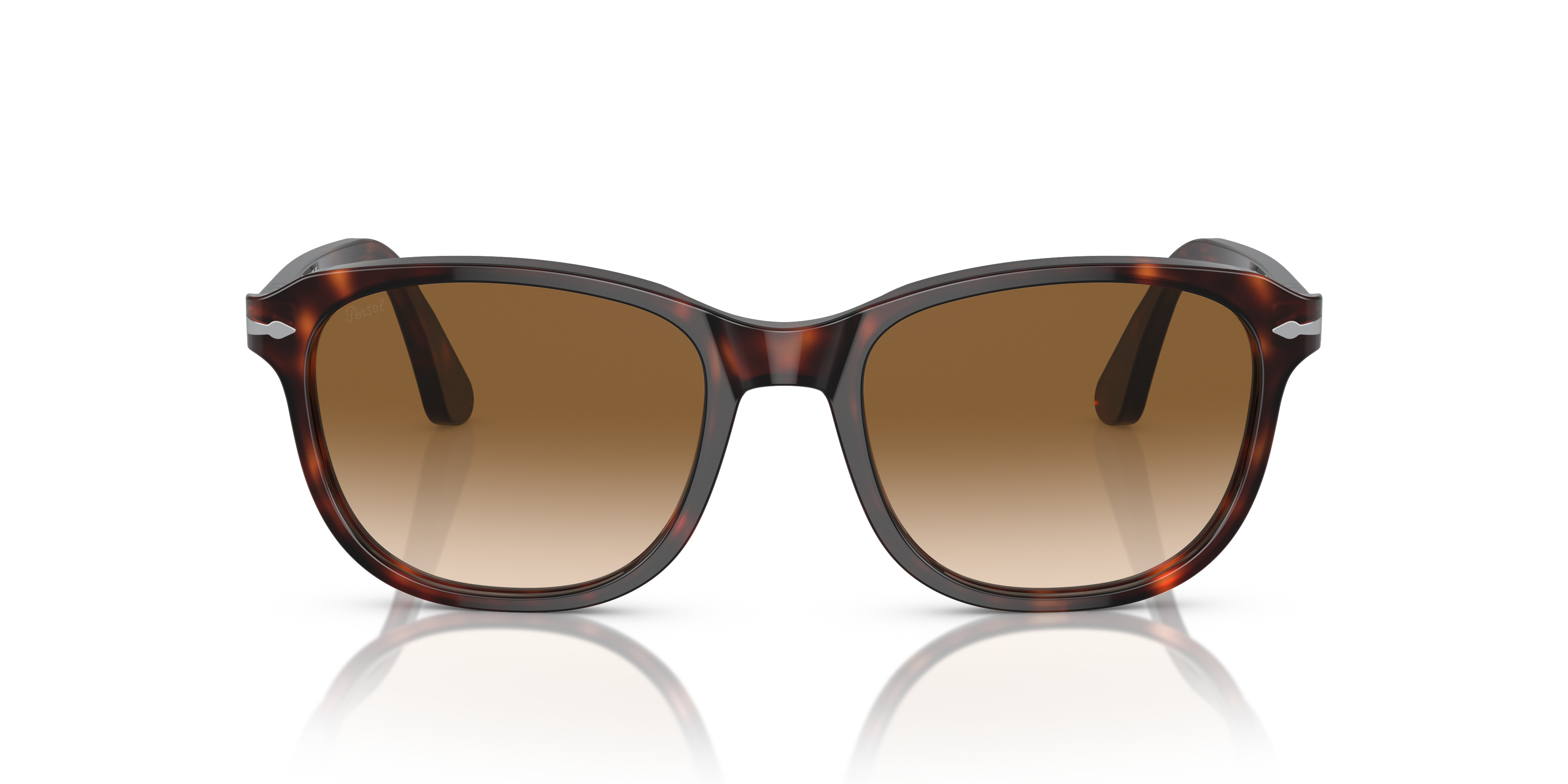 A modern rectangular shape characterized by a brand new arrow execution on the temples. The new arrow always comes in Silver on a selection of acetate colors including classic Black and a total of four Havana shades. MODEL CODE: PO1935S 24/51 57-19 FRONT COLOR: Havana LENS COLOR: Clear Gradient Brown LENS MATERIAL: Crystal FRAME MATERIAL: Acetate FIT: Regular Fitting BRIDGE CHOICE & NOSEPAD: High Bridge Fit MADE IN: Italy