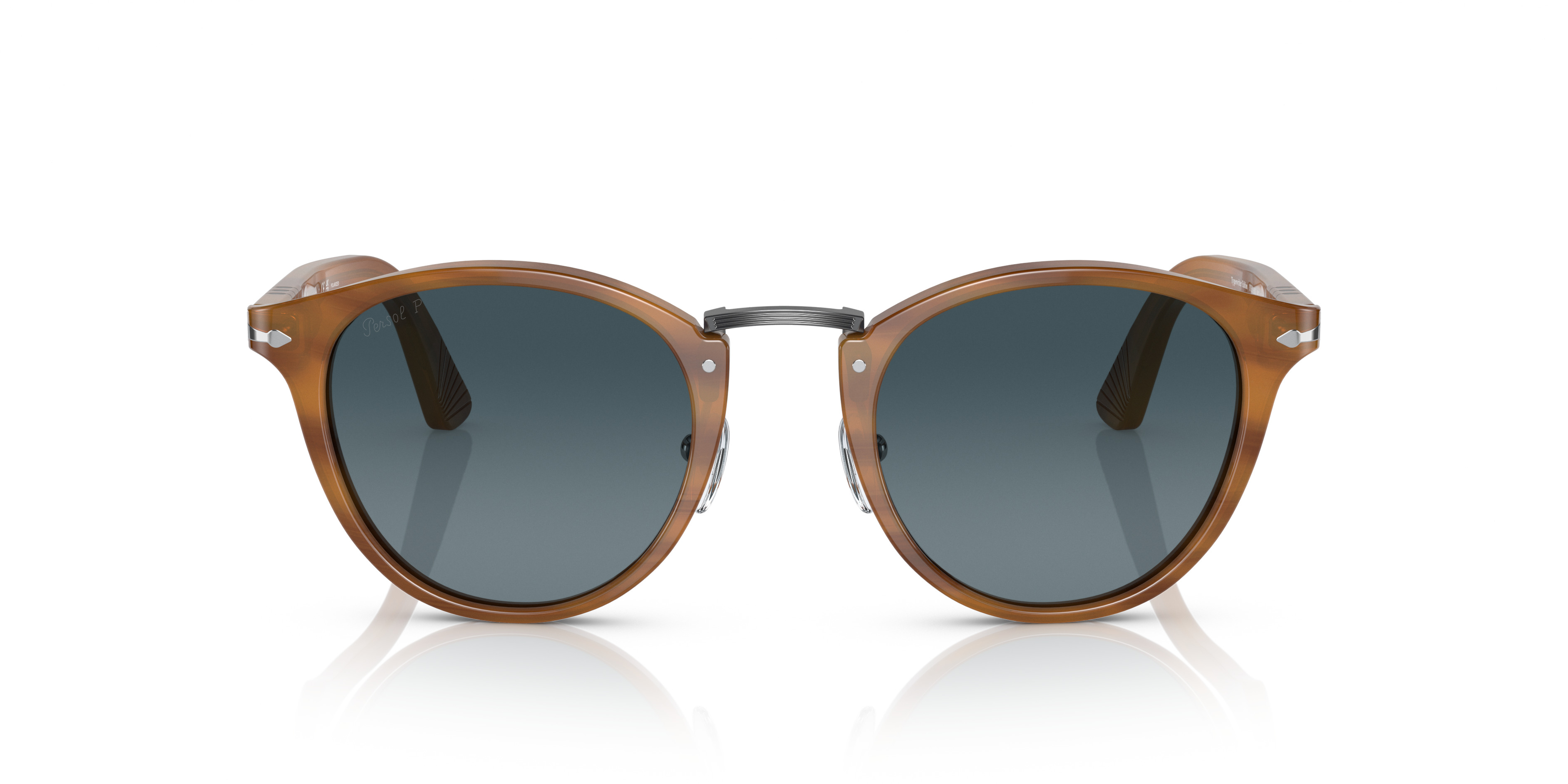 Part of the Typewriter Collection, this style is inspired by typewriters, rediscovered and celebrated for their timeless appeal. This model has a round unisex shape with keyboard letter-style decoration on the bridge. The temple tips are engraved to evoke the metal bars of the typewriter. MODEL CODE: PO3108S 960/S3 49-22 FRONT COLOR: Striped Brown LENS COLOR: Blue LENS MATERIAL: Crystal FRAME MATERIAL: Acetate FIT: Narrow Fitting BRIDGE CHOICE & NOSEPAD: Adjustable Nosepads MADE IN: Italy