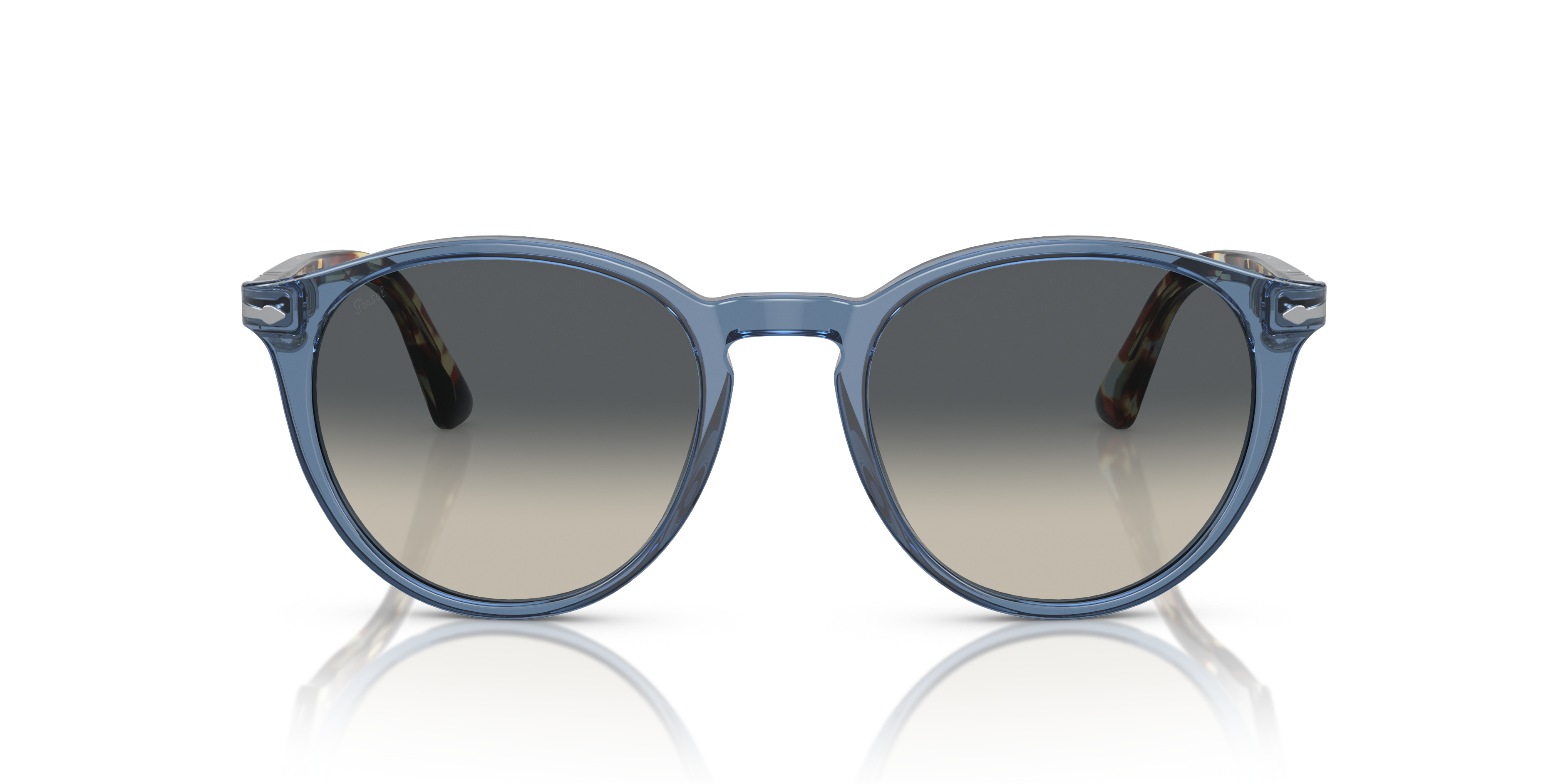 Persol PO3152S is a pair of sunglasses with a stylish, distinctive look. Available in an new exclusive colorway: gradient lenses shade from light to dark grey, transparent blue and brown tortoise temples paired with transparent navy acetate frame. With its unique phantos shape, these sunglasses offer an unconventional yet stylish accessory that stands out from the crowd. MODEL CODE: PO3152S 120271 52-20 FRONT COLOR: Transparent Navy LENS COLOR: Light Grey Gradient Dark Grey LENS MATERIAL: Crystal FRAME MATERIAL: Acetate FIT: Regular Fitting BRIDGE CHOICE & NOSEPAD: High Bridge Fit MADE IN: Italy