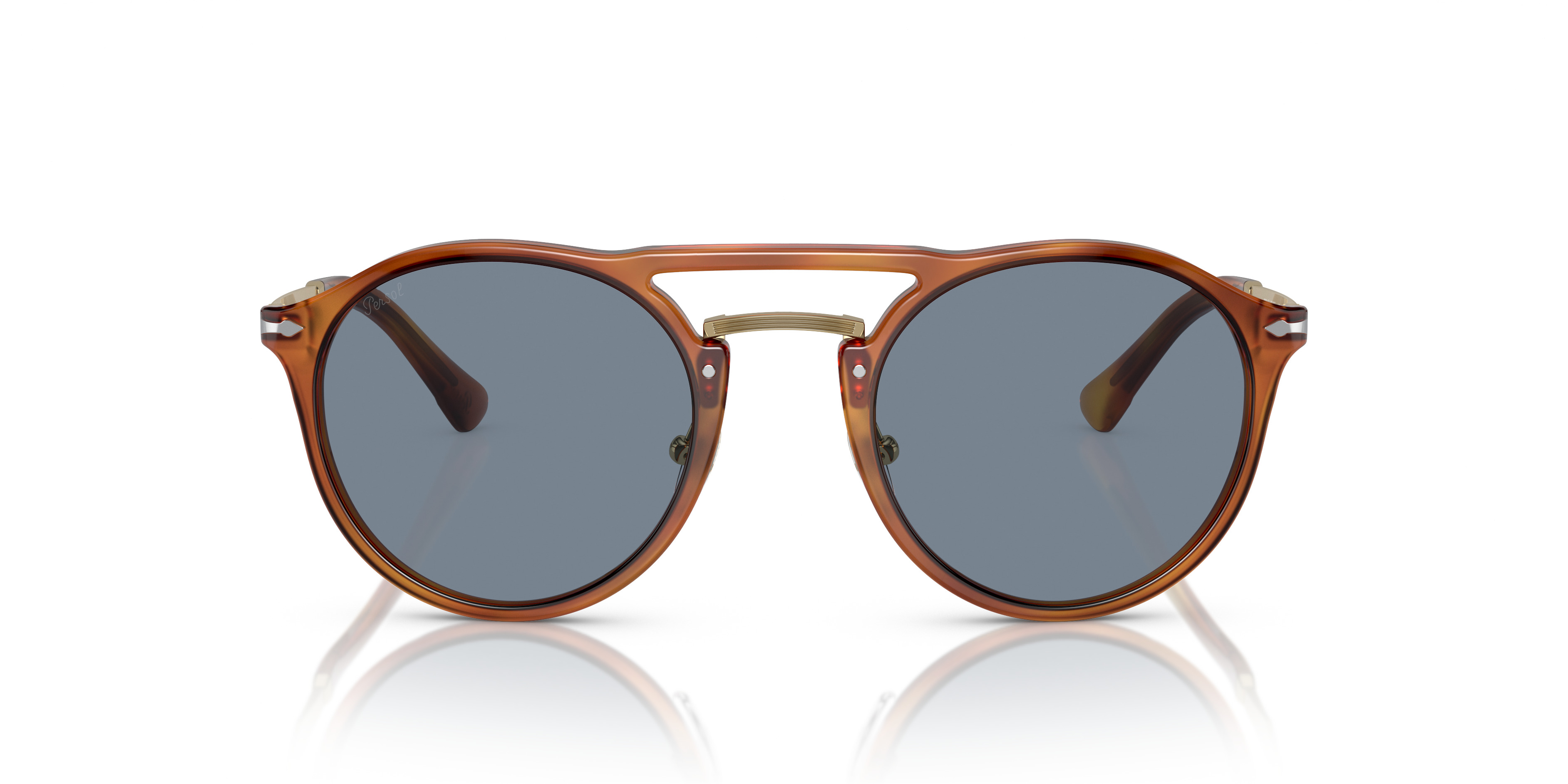 On-point acetate rounded panthos shape, raised flat top acetate bar, metal low bridge and sophisticated material mixes make this model a nust-have for everybody MODEL CODE: PO3264S 96/56 50-22 FRONT COLOR: Terra Di Siena LENS COLOR: Light Blue LENS MATERIAL: Crystal FRAME MATERIAL: Acetate FIT: Regular Fitting BRIDGE CHOICE & NOSEPAD: Adjustable Nosepads MADE IN: Italy