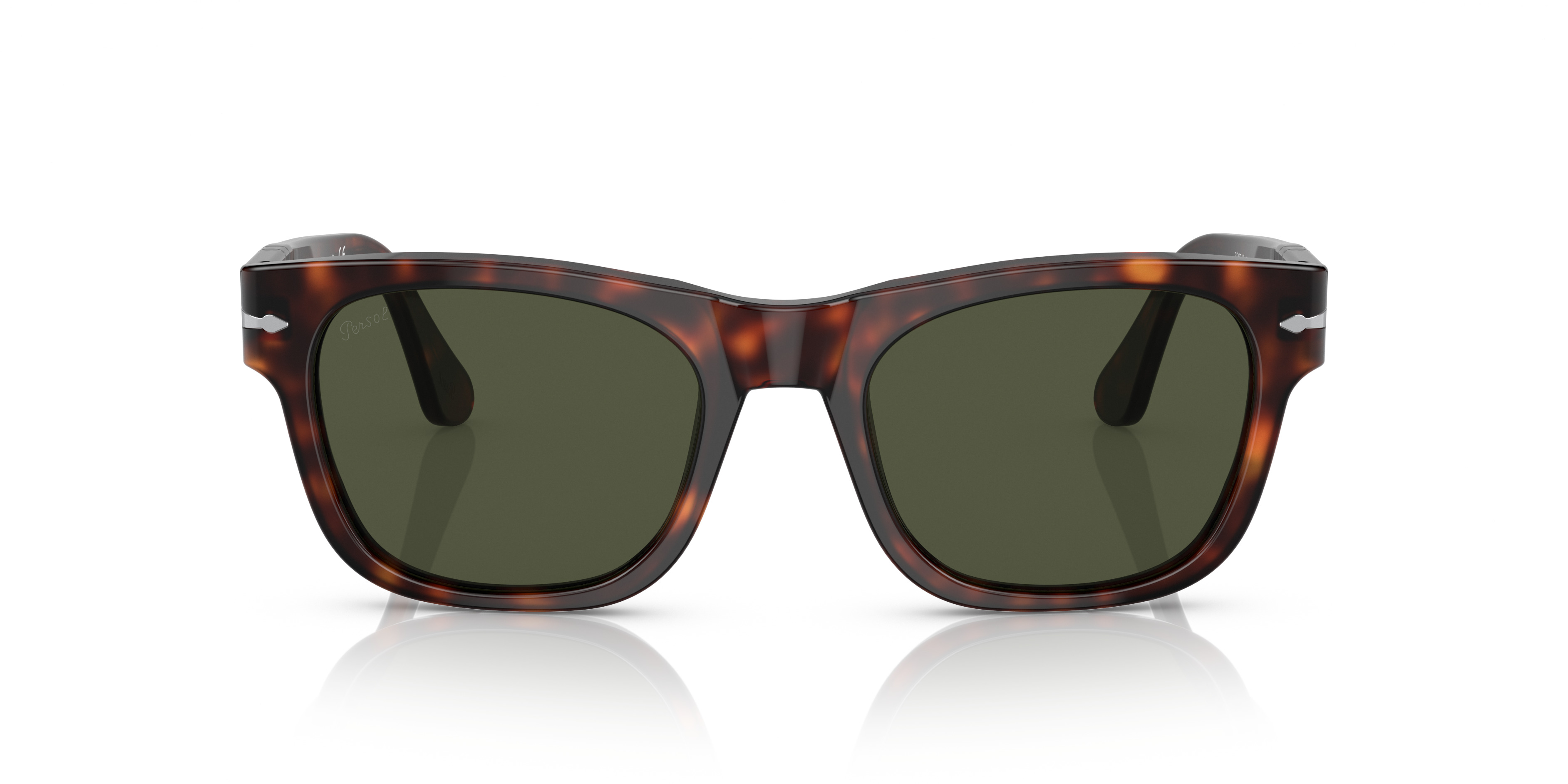 This sun frame is characterised by emblematic retro elements and an iconic appeal. Featuring the iconic Arrow, Meflecto System in a sophisticated soft champagne tone with opaline acetate effect offering the perfect seasonal colourway. MODEL CODE: PO3269S 24/31 54-20 FRONT COLOR: Havana LENS COLOR: Green LENS MATERIAL: Crystal FRAME MATERIAL: Acetate FIT: Regular Fitting BRIDGE CHOICE & NOSEPAD: High Bridge Fit MADE IN: Italy