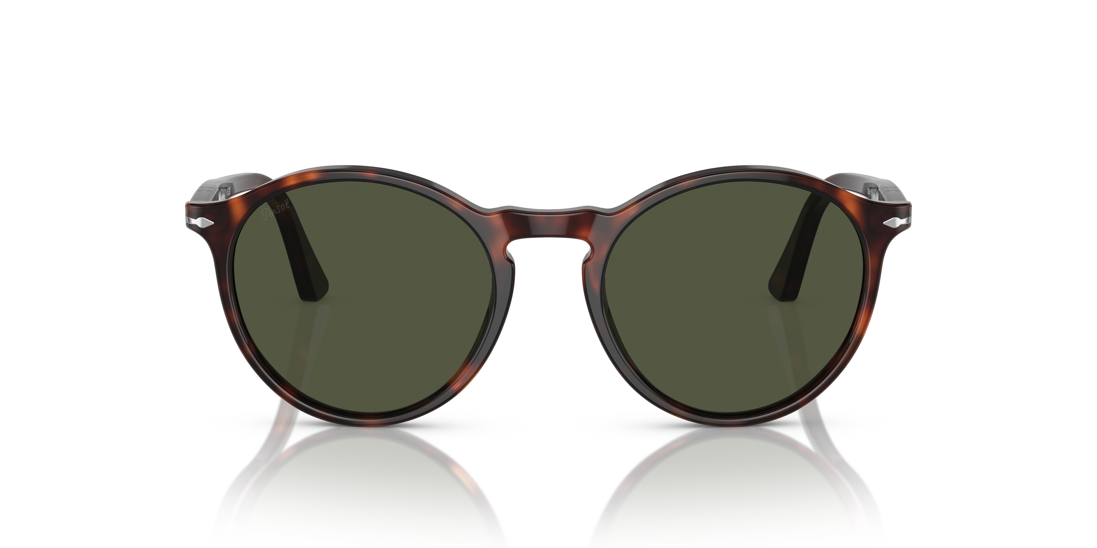 This round phantos shape with sleek silver Persol arrow and keyhole bridge provides true authenticity and easy to-wear style. MODEL CODE: PO3285S 24/31 52-19 FRONT COLOR: Havana LENS COLOR: Green LENS MATERIAL: Crystal FRAME MATERIAL: Acetate FIT: Narrow Fitting BRIDGE CHOICE & NOSEPAD: High Bridge Fit MADE IN: Italy