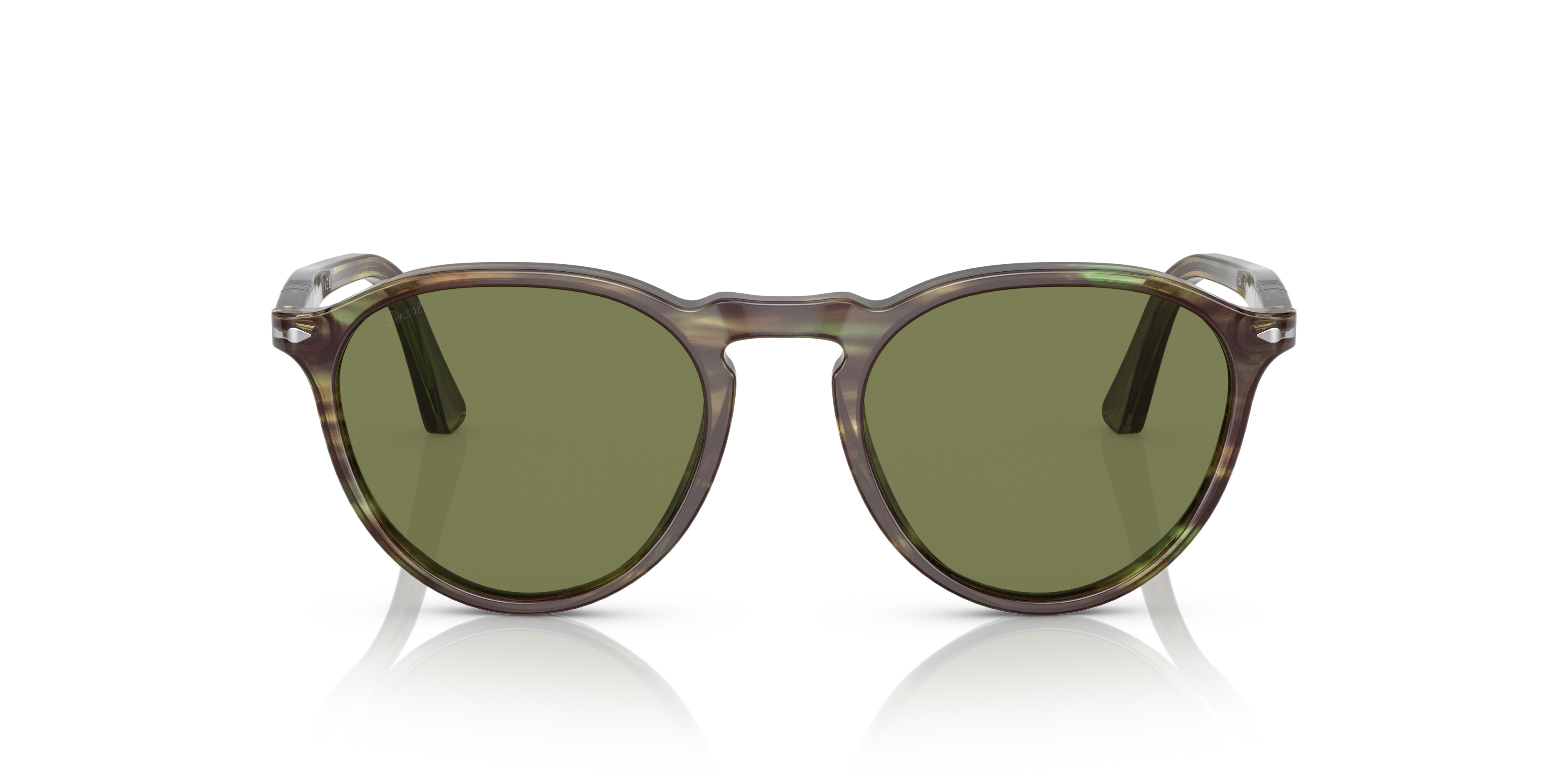 This sun frame is characterised by emblematic retro elements and an iconic appeal. Featuring the iconic Arrow, Meflecto System in a sophisticated soft champagne tone with opaline acetate effect offering the perfect seasonal colourway. MODEL CODE: PO3286S 11564E 49-19 FRONT COLOR: Striped Green LENS COLOR: Light Green LENS MATERIAL: Crystal FRAME MATERIAL: Acetate FIT: Narrow Fitting BRIDGE CHOICE & NOSEPAD: High Bridge Fit MADE IN: Italy