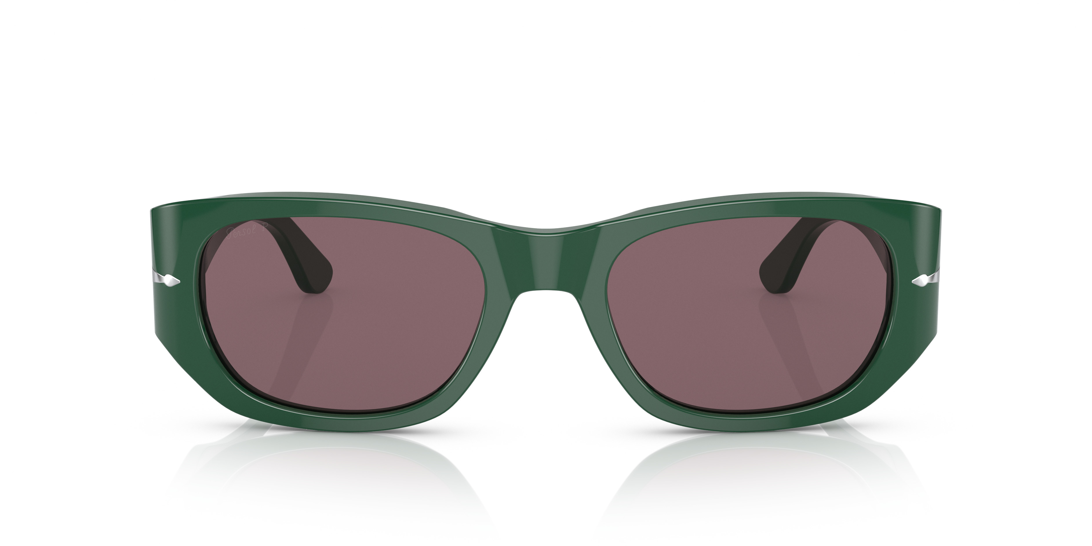 This Persol sun style features new bold 24mm temple execution with the Maflecto and iconic arrows that finish on the front. Acetate frames characterized by rich colorways. MODEL CODE: PO3307S 1171AF 55-21 FRONT COLOR: Green LENS COLOR: Dark Violet Polarized LENS MATERIAL: Crystal FRAME MATERIAL: Acetate FIT: Regular Fitting BRIDGE CHOICE & NOSEPAD: High Bridge Fit MADE IN: Italy