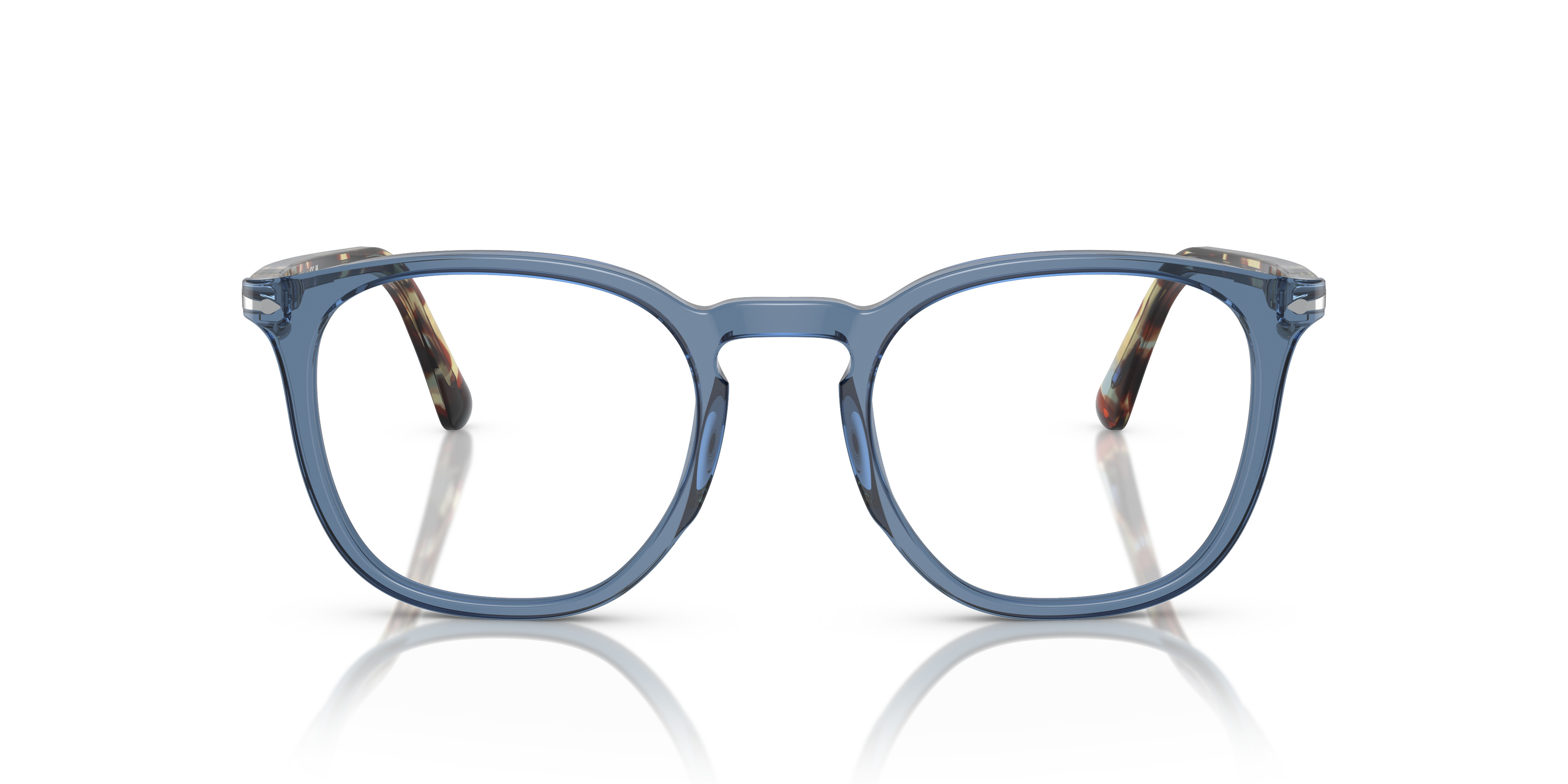 For a look that's unique, slip into this optical pair of Persol PO3318V. These unisex eyeglasses showcase the high-quality craftsmanship of the acetate frame in a classic phantos shape. Available in an new exclusive colorway: transparent blue and brown tortoise temples paired with transparent navy acetate frame, all made with acetate material with a polished finish for a shiny touch. MODEL CODE: PO3318V 1202 51-21 FRONT COLOR: Transparent Navy LENS COLOR: Clear FRAME MATERIAL: Acetate FIT: Narrow Fitting BRIDGE CHOICE & NOSEPAD: High Bridge Fit MADE IN: Italy