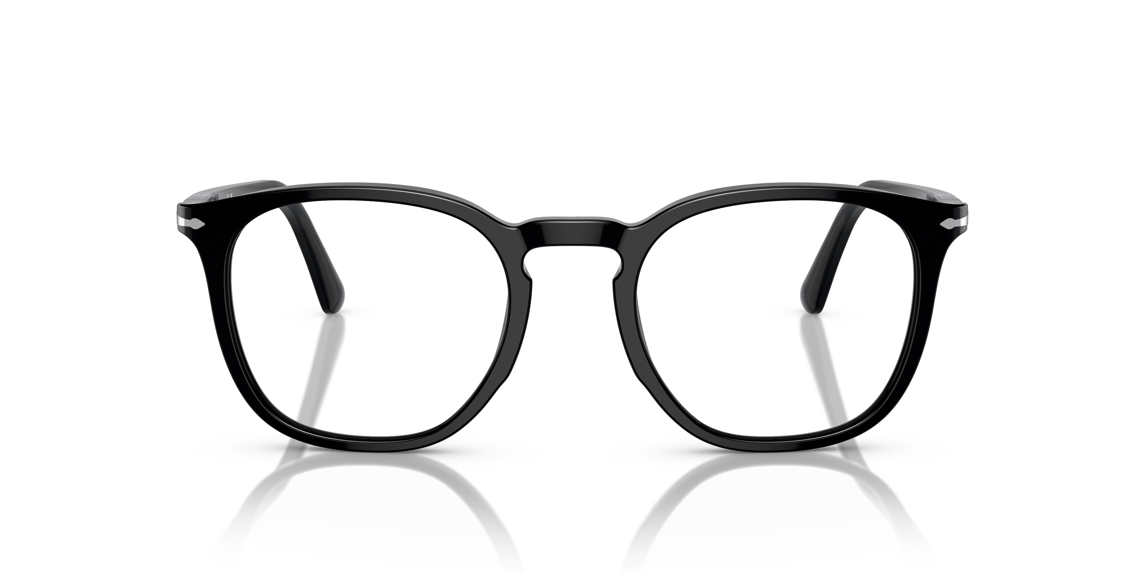 Easy-to-wear phantos shape available with the iconic keyhole bridge, flex hinges, the arrow and Meflecto. Available in classic colors including transparent Miele and brand new colors Dusty Blue and Dark Green. MODEL CODE: PO3318V 95 51-21 FRONT COLOR: Black LENS COLOR: Clear LENS MATERIAL: Crystal FRAME MATERIAL: Acetate FIT: Regular Fitting BRIDGE CHOICE & NOSEPAD: High Bridge Fit MADE IN: Italy