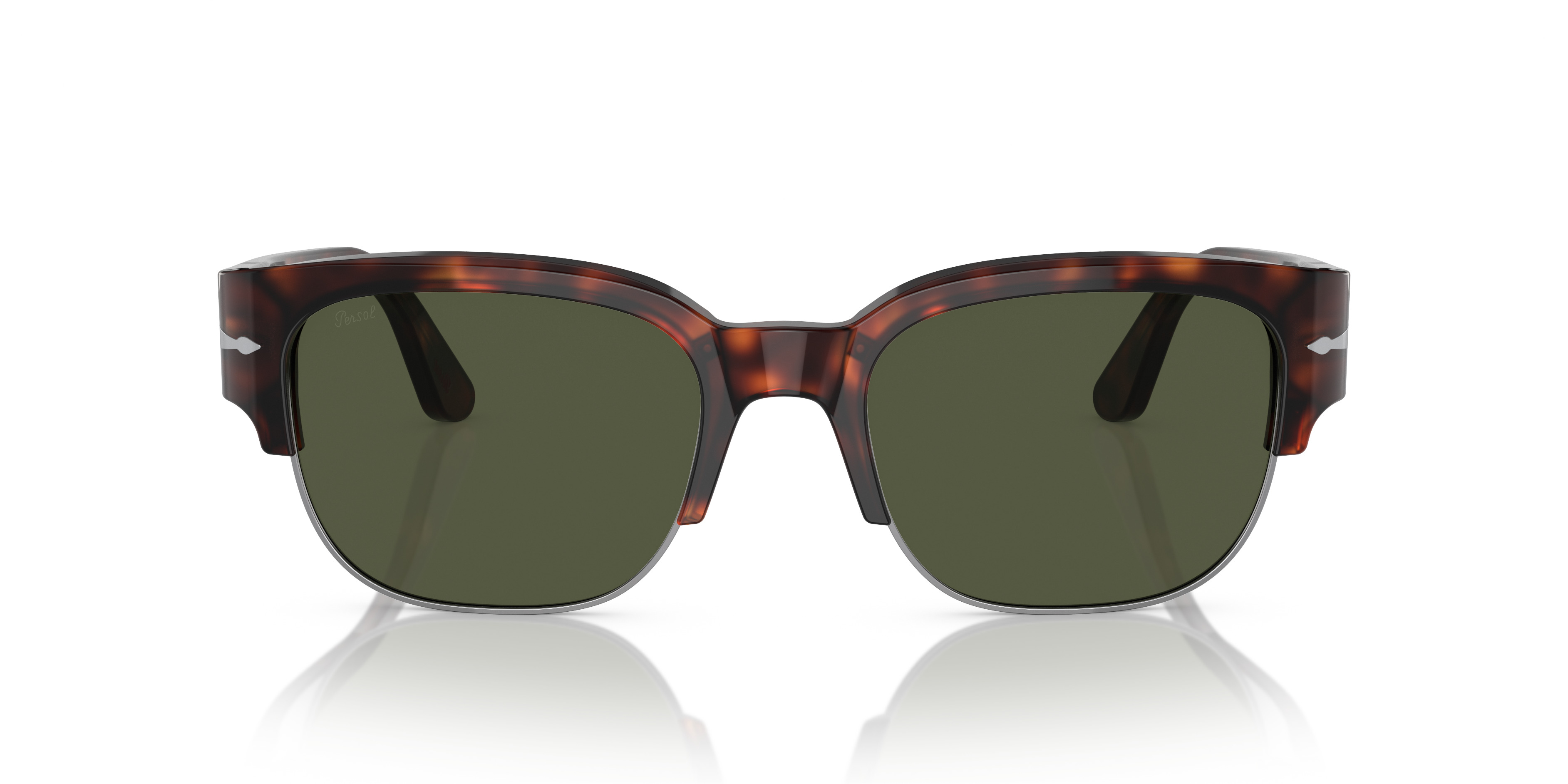Persol takes us back to the 80s with this archive-inspired Cellor style with both an acetate and metal front, enriched by wide temples and of course by the iconic Persol arrow and Meflecto. Available in classic black and rich havana colors. MODEL CODE: PO3319S 24/31 52-20 FRONT COLOR: Havana LENS COLOR: Green LENS MATERIAL: Crystal FRAME MATERIAL: Acetate FIT: Regular Fitting BRIDGE CHOICE & NOSEPAD: High Bridge Fit MADE IN: Italy