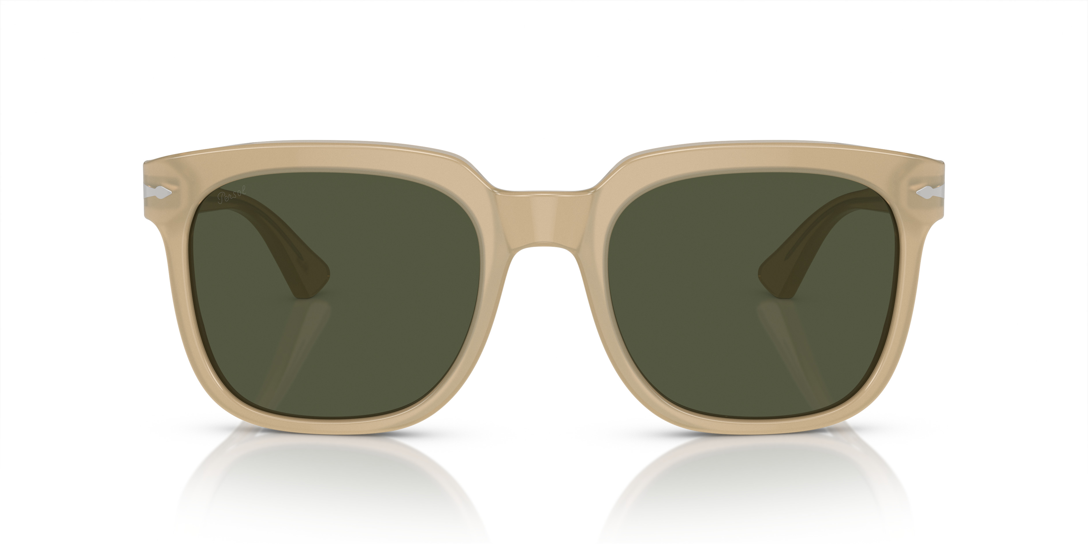MODEL CODE: PO3323S 116931 56-22 FRONT COLOR: Opal Beige LENS COLOR: Green LENS MATERIAL: Crystal FRAME MATERIAL: Acetate FIT: Wide Fitting BRIDGE CHOICE & NOSEPAD: High Bridge Fit MADE IN: Italy