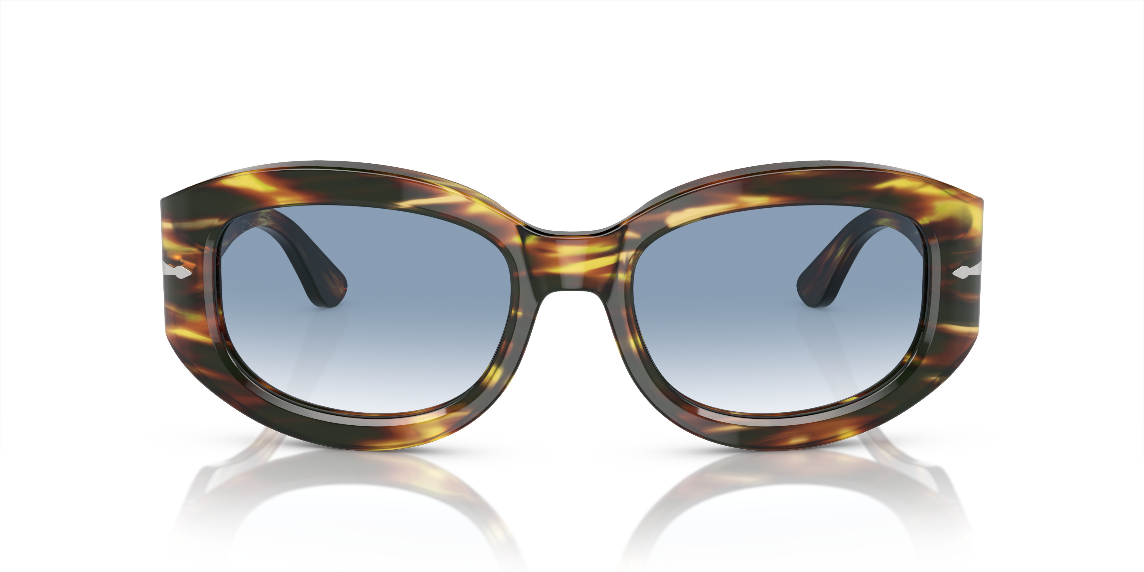 MODEL CODE: PO3335S 938/3F 56-20 FRONT COLOR: Brown-Yellow Tortoise LENS COLOR: Clear Gradient Blue LENS MATERIAL: Crystal FRAME MATERIAL: Acetate FIT: Wide Fitting BRIDGE CHOICE & NOSEPAD: High Bridge Fit MADE IN: Italy