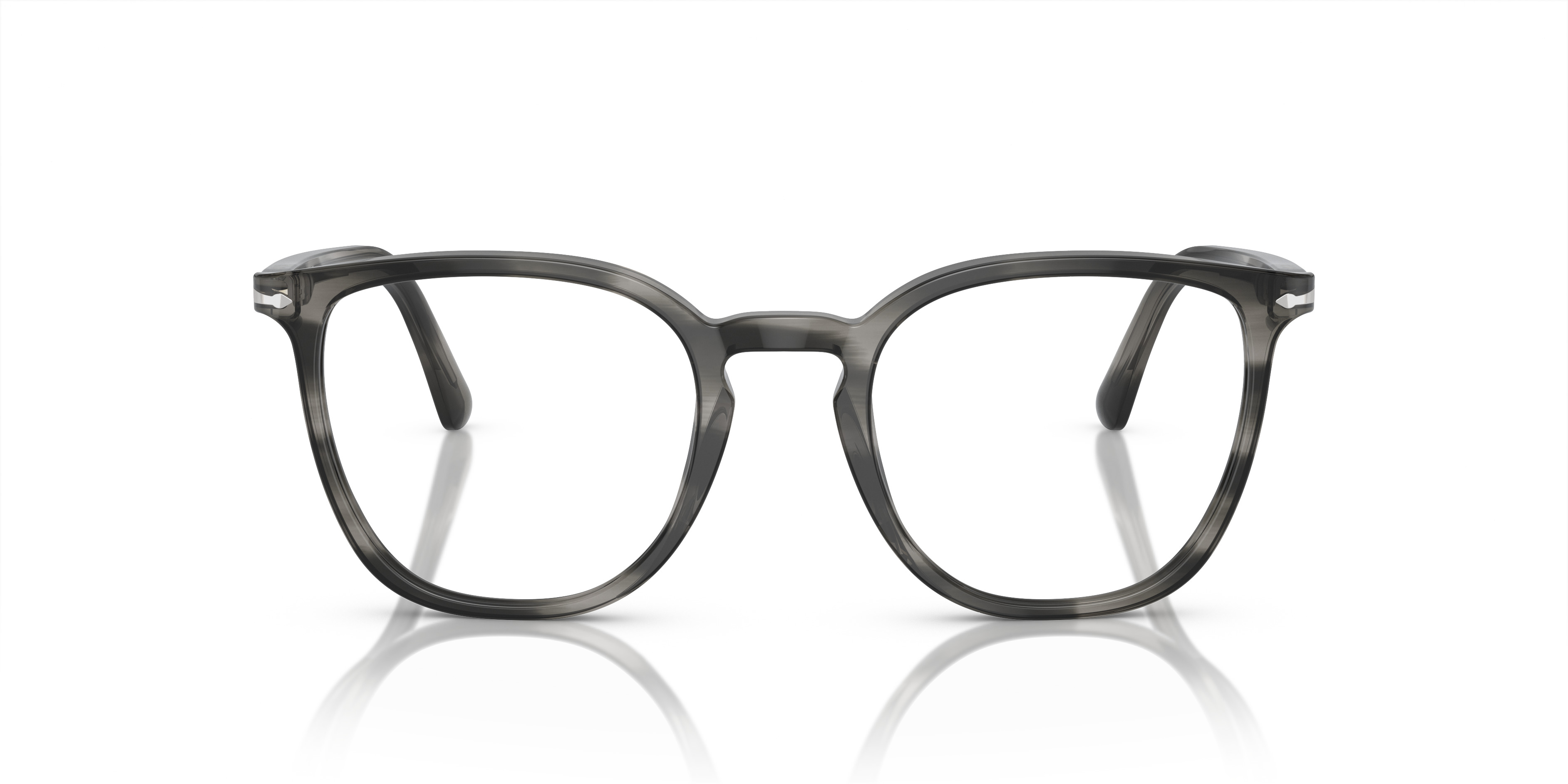 MODEL CODE: PO3338V 1192 52-21 FRONT COLOR: Striped Grey LENS COLOR: Clear FRAME MATERIAL: Acetate FIT: Regular Fitting BRIDGE CHOICE & NOSEPAD: High Bridge Fit MADE IN: Italy