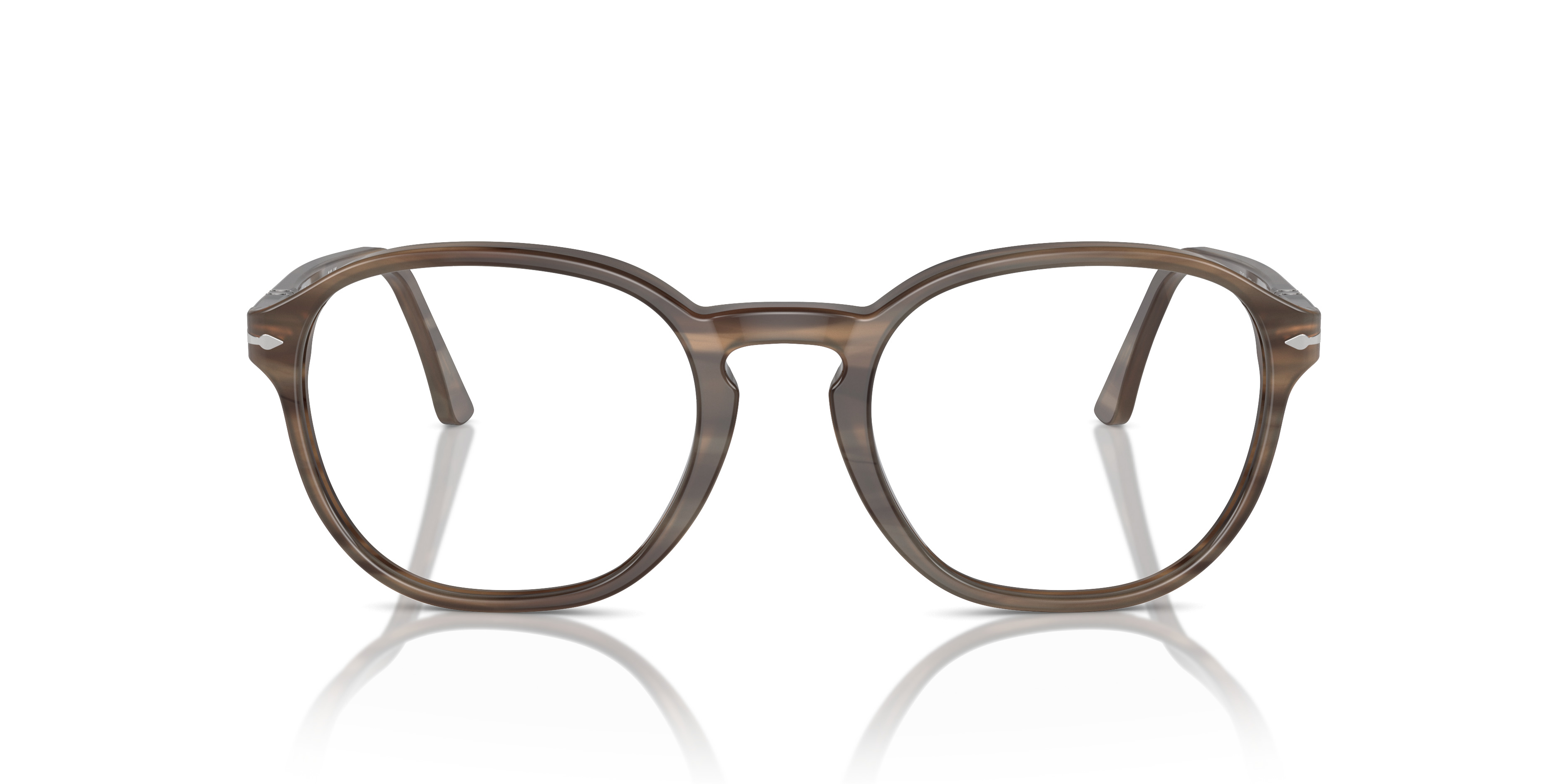 MODEL CODE: PO3343V 1208 53-21 FRONT COLOR: Striped Brown LENS COLOR: Clear FRAME MATERIAL: Acetate BRIDGE CHOICE & NOSEPAD: High Bridge Fit MADE IN: Italy