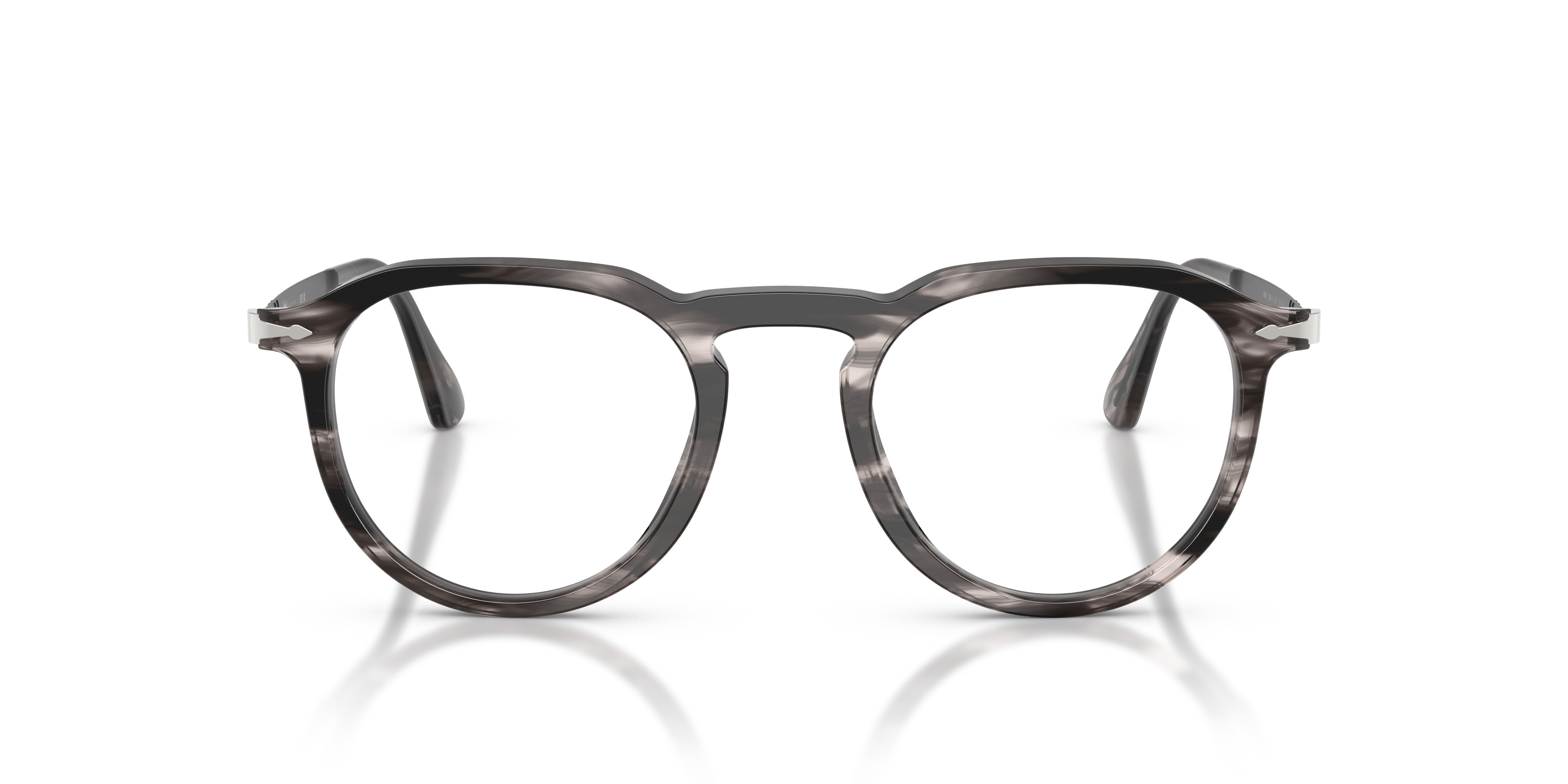 MODEL CODE: PO3387V 1238 51-21 FRONT COLOR: Striped Black & Grey LENS COLOR: Demo Lens FRAME MATERIAL: Acetate FIT: Narrow Fitting BRIDGE CHOICE & NOSEPAD: High Bridge Fit MADE IN: Italy