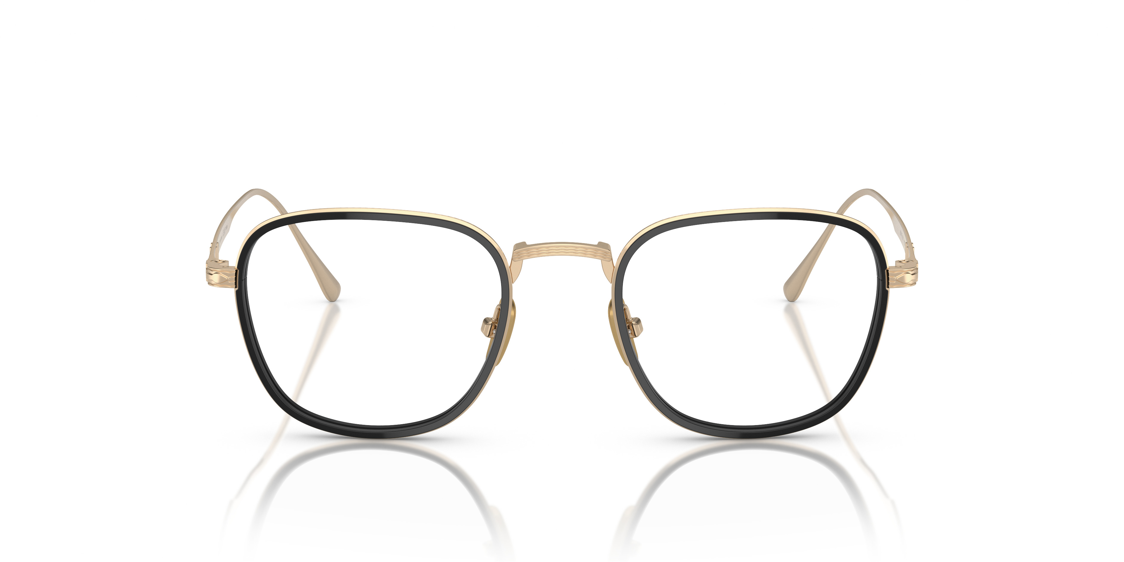 With its new squared shape, this titanium model perfectly combines the skill, refinement and modernity of Japanese style with the distinctly Italian artisanal quality that has always defined Persol MODEL CODE: PO5007VT 8011 45-21 FRONT COLOR: Gold/Black LENS COLOR: Clear LENS MATERIAL: Plastic FRAME MATERIAL: Titanium FIT: Narrow Fitting BRIDGE CHOICE & NOSEPAD: Adjustable Nosepads MADE IN: Japan