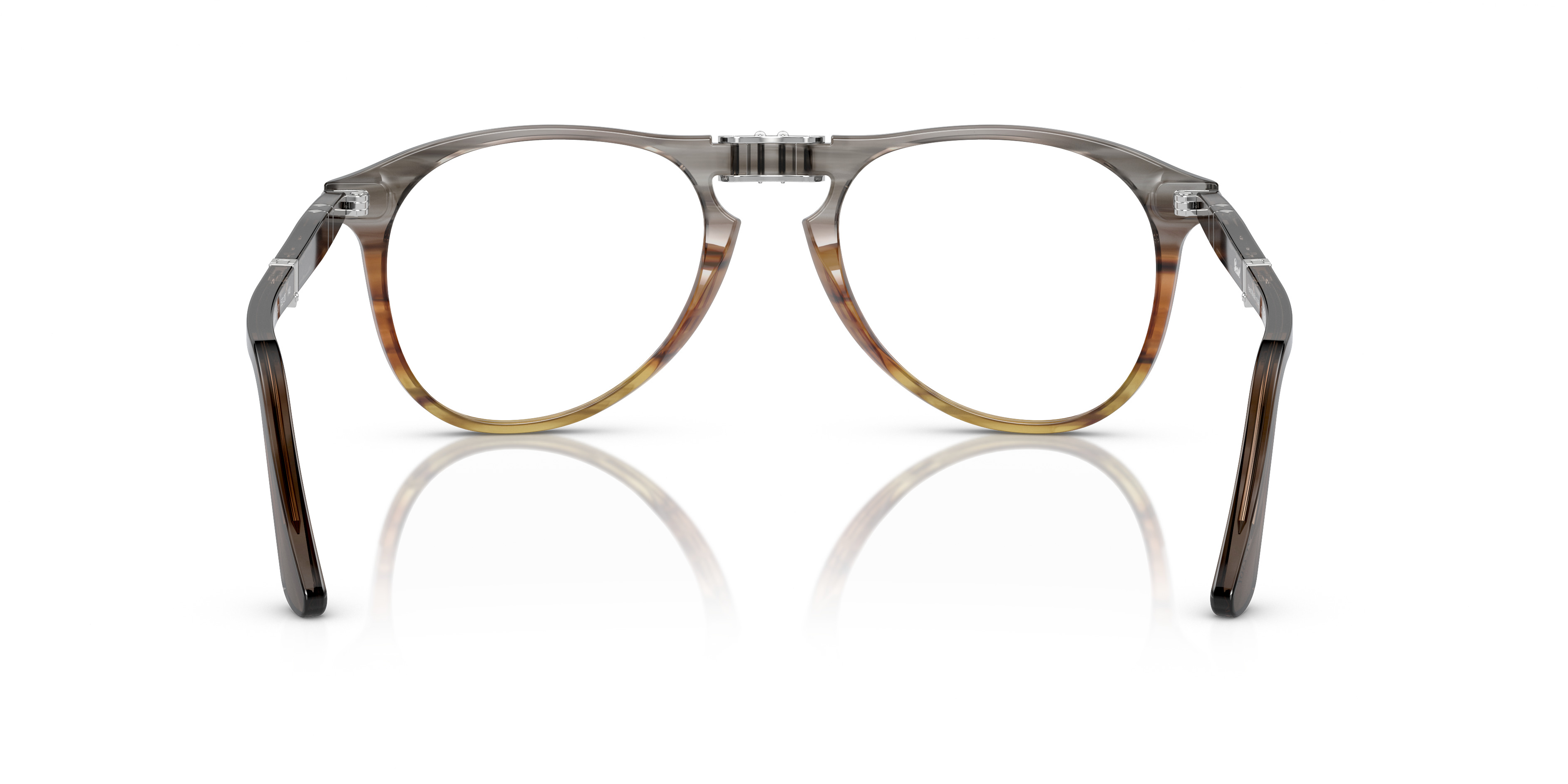 Defined by its unfailing quest for quality excellence and technical innovation, Persol reveals another example of flawless design. The Meflecto system ensures comfort, while the sophisticated colour palette offers a wide choice to satisfy even the most demanding customers. MODEL CODE: PO9714VM 1137 52-20 FRONT COLOR: Opal Brown Embedding LENS COLOR: Clear LENS MATERIAL: Plastic FRAME MATERIAL: Acetate FIT: Regular Fitting BRIDGE CHOICE & NOSEPAD: High Bridge Fit MADE IN: Italy