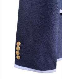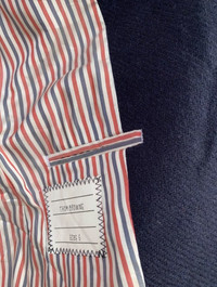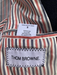 Peace Be Upon You Thom Browne x Neiman Marcus x Target Blazer Target x Neiman Marcus x Thom Brown collection, and is a men's Blazer by Thom Browne. It's a navy blue wool, and features white piping as trim and three gold buttons on a red, white and blue ribbon. Fully lined, with internal pockets on both sides, as pictures. P2P :19 in L. : 26.5 in S2S : 16.5 in SL :23.5 in New with tags Shiping Estimated to be arrive in 2 or 3 week #thombrowne #neimanmarcus #designer #luxury