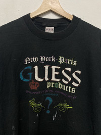 ‼️Please buy with confidence‼️ TAG LABEL : Guess 80s SIZE ON TAG : One Size/ fit L CONDITION : Good vintage item - Paints on shirt. Please refer to pictures MEASUREMENT APPROXIMATELY (laid on flat floor):- Armpit to armpit : 22.5” Shoulder to hem/Length : 29” ALERT !!! - Ask me for bundles purchase to get less price (minimum 3 items) - PAYPAL only - Always check your shipping address (P.O box are not recommended) - Please leave your phone number - Shipping from Malaysia 🇲🇾 using FedEx/DHL Express with 3-6 days ETA depend on location & customs clearance (Shipping cost may varies for remote areas) - Vintage size may be different with modern size so please compare the measurement with your garment before make a purchase - Item had been used previously. Sign of wear and ages might be available on it. - No refund and no return so please read all the details and view or enlarge the pictures before make a purchases - Please follow my shop and thank you for dropped by