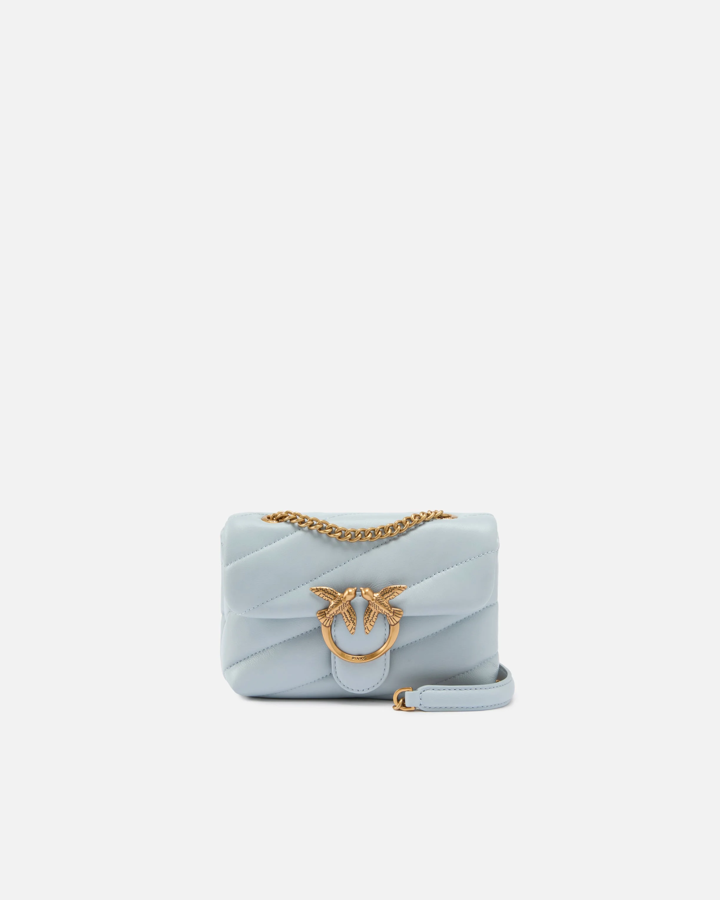 100040A0F2-E37Q Baby Love Bag Puff in soft nappa leather with diagonal maxi quilting. The fastening is embellished with the iconic metal Love Birds Diamond Cut buckle. The accessory boasts a microsuede-lined interior and a zipped slip pocket. Complete with thin metal-chain shoulder strap. - LOVE BABY PUFF C COMPOSITION Leather: SHEEP LEATHER 100% SHEEPSKIN LEATHER 100% - Lining: COTTON 100% - Accessory: Zinc 100% MEASURES H: 13.0 cm W: 7.0 cm L: 18.0 cm