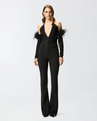OTTOVOLANTE BODYSUIT − 105483A2GSZ99 Lightweight jersey bodysuit with detachable shoulders and sleeves by means of a button, which offers different wear options. The lightness of the material allows you to create draping and gathering for an extremely feminine and refined silhouette. The distinctive detail of the piece is provided by the plunging neckline and the feather applique mounted on a detachable grosgrain ribbon, which in addition to adding a touch of style, also become a real gem to wear around the neck. This design is destined to become the ace up your sleeve when the dress code is of a high standard. COMPOSITION Outside Fabric: VISCOSE 94% ELASTANE 6% - : TURKEY FEATHERS 70% TURKEY FEATHER 70% Ostrich feather 30% OSTRICH FEATHER 30%