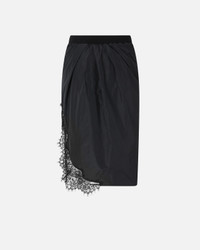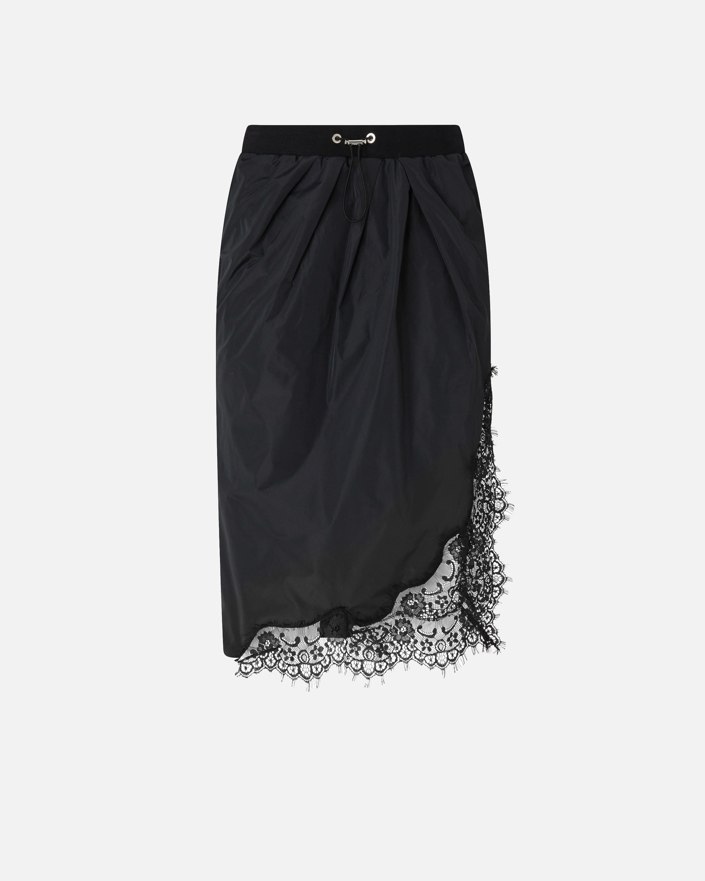 CIPRIANA SKIRT − 106106A30BZ99 Calf-length skirt made from memory microfibre taffeta. The crinkled look of the fabric works perfectly with the inlaid lace insert at the hem, creating a delicate lingerie effect, while the elasticated waistband with trekking-inspired drawstring provides a sporty touch and helps adapt the garment to any body shape. This elegant skirt provides a bold, feminine touch for your special occasions, in an outfit that won't go unnoticed. COMPOSITION 1° Outside Fabric: POLYESTER 100% - 2° Outside Fabric: COTTON 95% ELASTANE 5% - Lining: POLYESTER 100% - Accessory: POLYAMMIDE 100% POLYAMIDE 100%