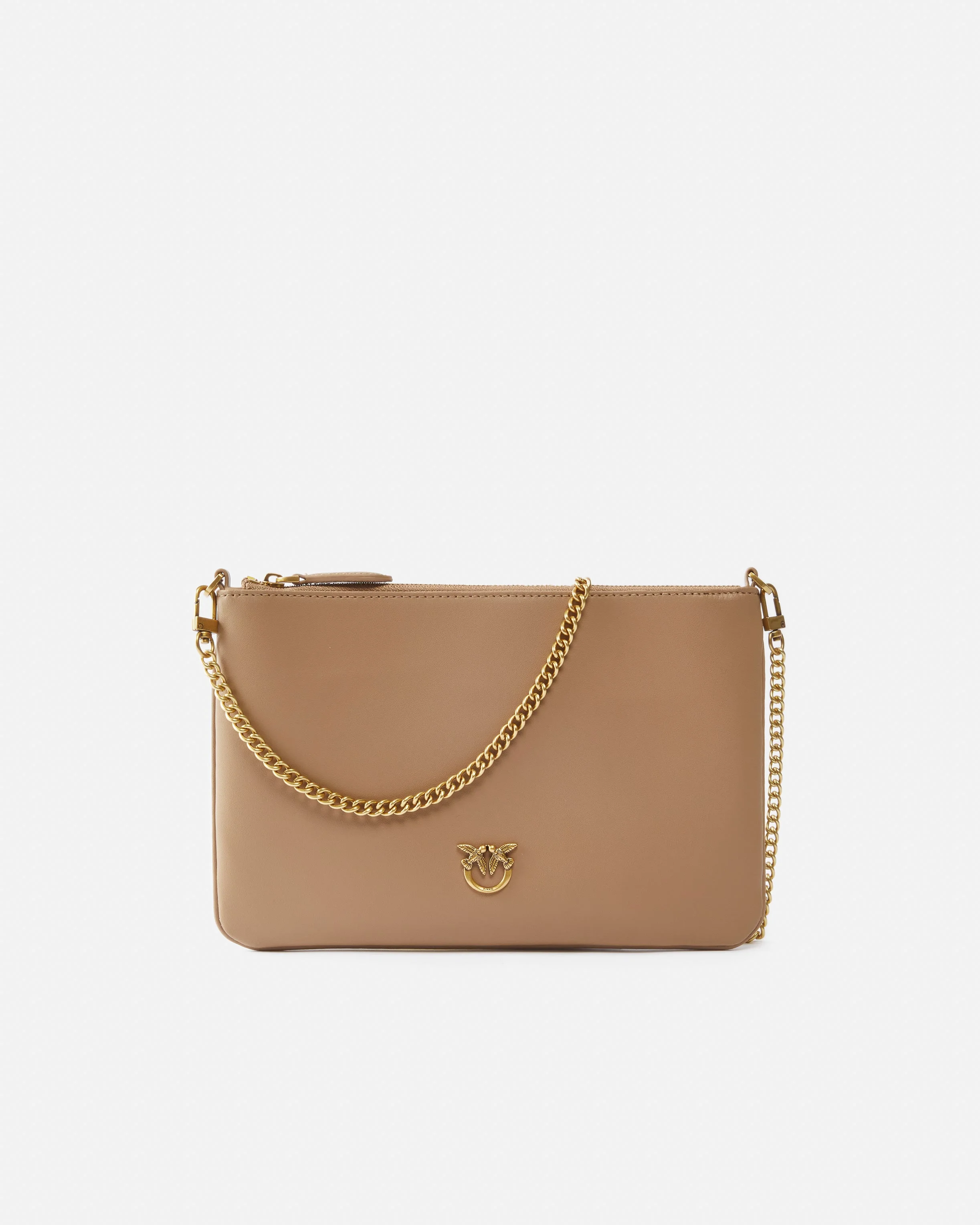 Flat shoulder bag in soft, silky leather. Love Birds Diamond Cut plaque embellishment. Lined with polycotton and complete with removable thin chain shoulder strap. Zip fastening. COMPOSITION Outside Fabric: COWHIDE 92% BOVINE SKIN 92% POLYURETHANE 8% - Lining: POLYESTER 100% - Material: POLYAMMIDE 50% POLYAMIDE 50% POLYURETHANE 50% MEASUREMENTS - Height: 17 cm - Width: 1 cm - Length: 25 cm
