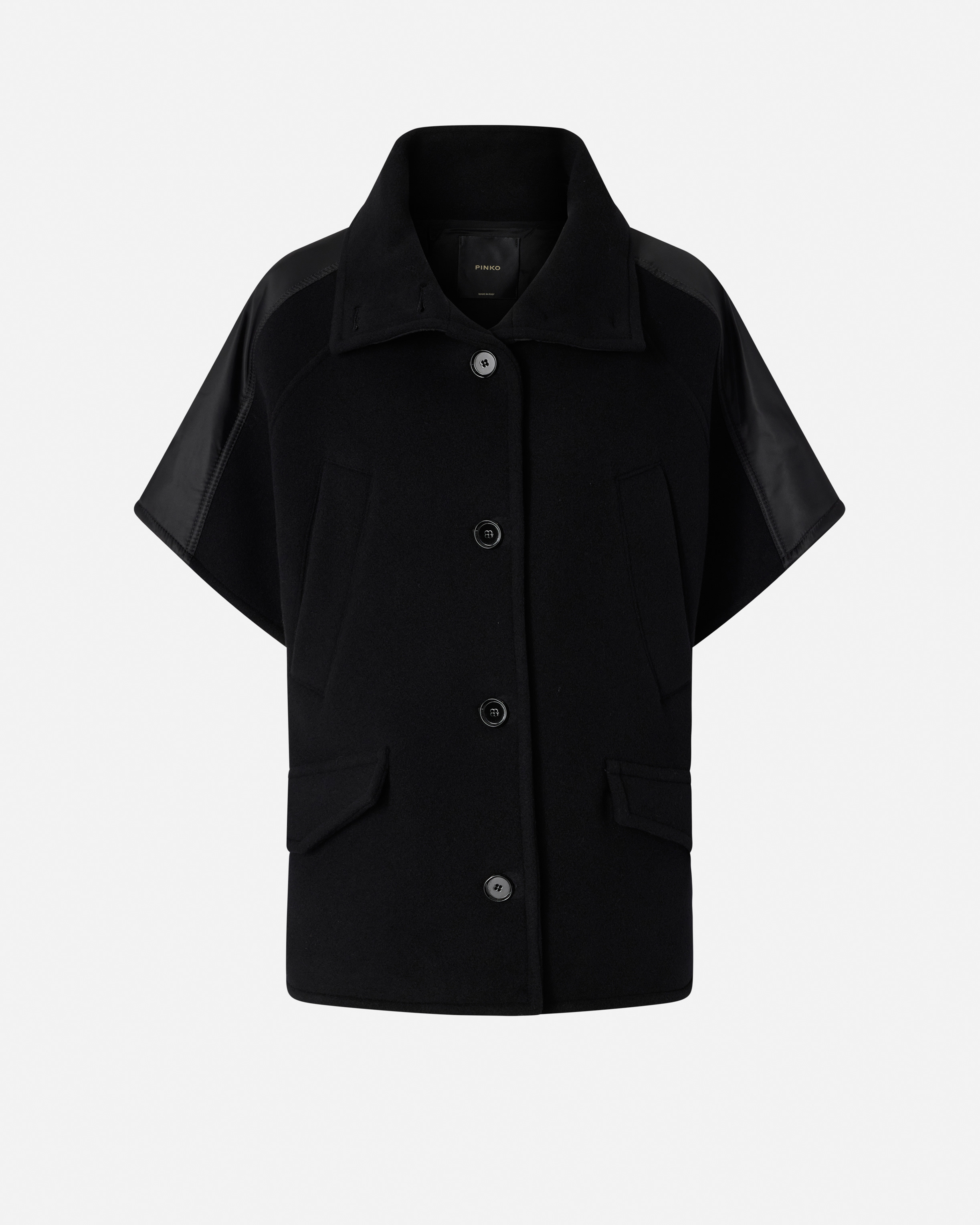 CARBONARA CAPPA − 105790A2SLZ99 Short cape with short sleeves and double flap and welt pockets on the front. The style is made from warm, soft wool-blend cloth with a high neck, shoulders and yoke in technical satin. Front button fastening. Thanks to its original but functional design, this cape is ready to become your new favourite outerwear piece in pure PINKO style. COMPOSITION 1° Outside Fabric: WOOL 78% POLYAMIDE 22% POLYAMMIDE 22% - 2° Outside Fabric: POLYAMMIDE 100% POLYAMIDE 100% - Lining: ACETATE 67% POLYESTER 33% - Padding: POLYESTER 100%