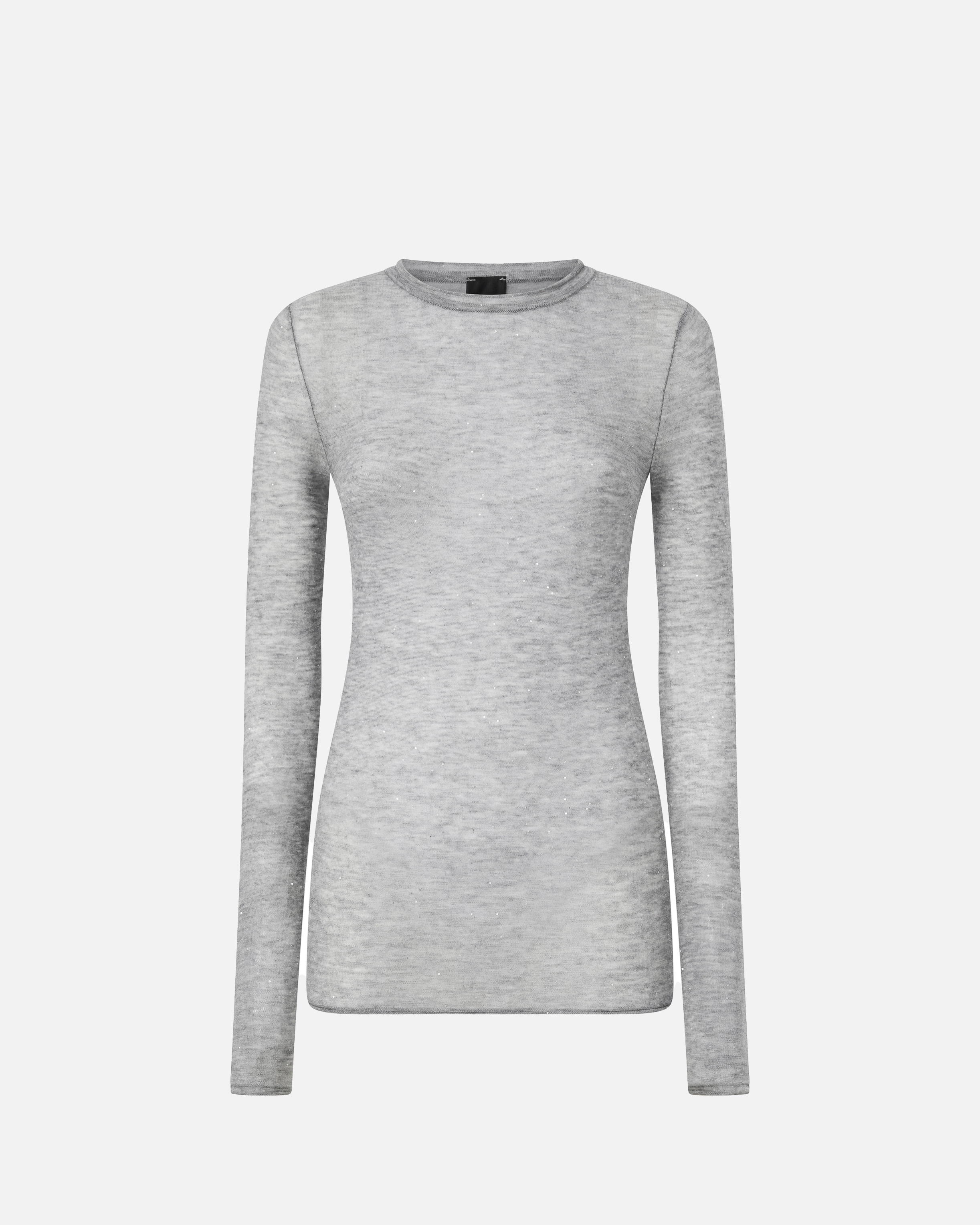 PICO KNITWEAR − 105398A2PMI42 Crew-neck sweater made from a semi-sheer wool blend: a lightweight and soft yarn that is almost impalpable, which helps create a sensual and striking look. The design is embellished with micro-sequins inserted in the thread and manages to be shiny and understated and extremely comfortable to wear. The piece has undergone finishing tests to minimise the possible formation of pilling, ensuring greater fabric softness and durability. The final touch is given by the label with PINKO lettering logo on the back. COMPOSITION Outer Yarn: WOOL 98% POLYESTER 2%