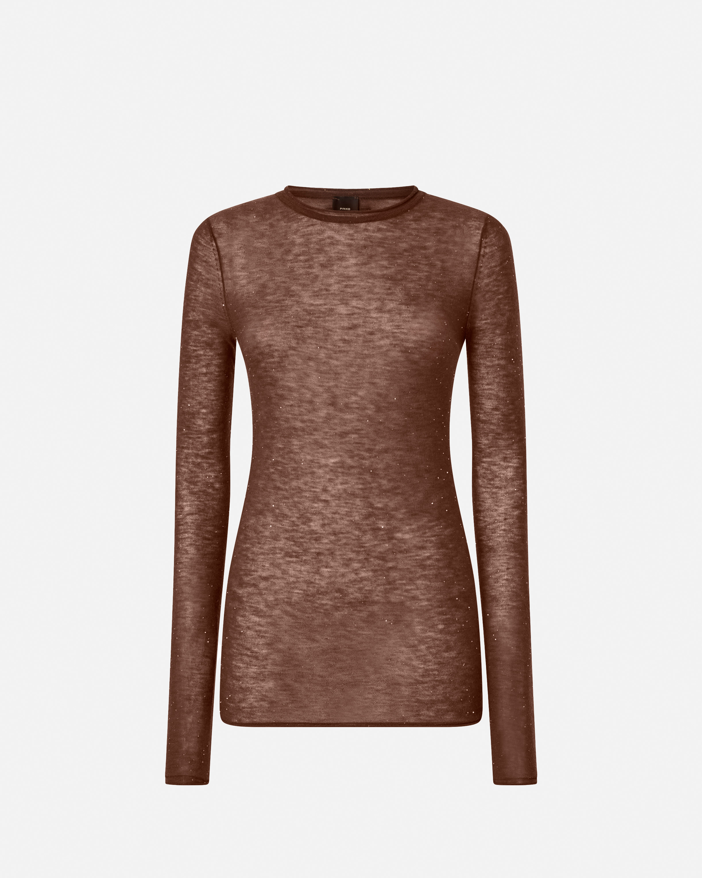 PICO KNITWEAR − 105398A2PML73 Crew-neck sweater made from a semi-sheer wool blend: a lightweight and soft yarn that is almost impalpable, which helps create a sensual and striking look. The design is embellished with micro-sequins inserted in the thread and manages to be shiny and understated and extremely comfortable to wear. The piece has undergone finishing tests to minimise the possible formation of pilling, ensuring greater fabric softness and durability. The final touch is given by the label with PINKO lettering logo on the back. COMPOSITION Outer Yarn: WOOL 98% POLYESTER 2%
