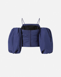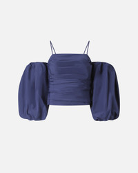 PALLOTTOLIERE TOP − 105552Y3LEG41 Taffeta crop top with slim shoulder straps and detachable sleeves, offering different styling options. The material is light and shiny and blends perfectly with the dynamic-volume design that distinguishes the garment. The meticulous cuts and modern lines of the design are embellished by distinctive elements, such as the seductive bustier details on the back and the puff sleeves. It creates an outfit with a dramatic and striking effect, which is also accentuated by the slightly gathered fabric of this distinctive top. COMPOSITION Outside Fabric: POLYESTER 100% - Body lining: POLYESTER 90% ELASTANE 10% - Sleeve lining: POLYESTER 100%
