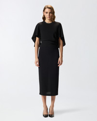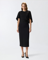 SCOPONE DRESS − 105583A2Q2Z99 Long lined dress with a fitted sheath silhouette, half-sleeves that are longer at the back and a round neck, embellished with hand-embroidered sequins and chatons. The shape of the skirt caresses and brings out the wearer's body figure, and there is a split in the middle at the bottom on the back. The technical viscose fabric manages to combine softness and fluidity to create a sophisticated texture that offers optimal comfort and fit, without losing the structured appearance of the design. The material has been designed to perfectly adhere to the lines of the body, enhancing the silhouette in a natural and defined way. The micro-crystal embroidery creates a contrast of shimmer that enhances the texture of the fabric and adds movement to the look, without losing a structured and feminine final effect. COMPOSITION Outside Fabric: VISCOSE 98% ELASTANE 2% - Lining: POLYESTER 100% - : POLYESTER 100%