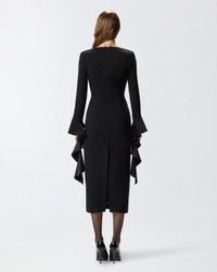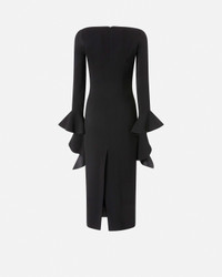 FORMINA DRESS − 105736A2Q2Z99 Long and elegant slim-fit dress with long sleeves and a square neckline. The shape of the skirt caresses and brings out the wearer's body figure, and there is a split in the middle at the bottom on the back. The piece is made from stretch viscose fabric, which translates into an optimal fit: the material is designed to perfectly adhere to the lines of the body, enhancing the silhouette in a natural and defined way. The spiral flounces on the side flaunt the satin fabric, creating shiny/matte contrast that enhances the texture. The mix of shapes adds movement to this refined look, without losing a structured and feminine final effect. COMPOSITION 1° Outside Fabric: VISCOSE 98% ELASTANE 2% - 2° Outside Fabric: POLYESTER 100% - Lining: POLYESTER 100%