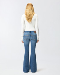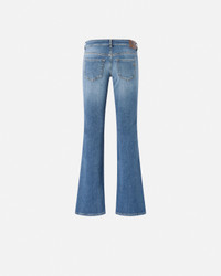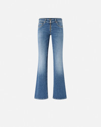 FANCY FLARE − 105550A2TKPJD Flared five-pocket jeans with a fitted line to the knee that flares out on the hem, made from stretch cotton denim treated with different washing techniques to obtain the final shade. The fabric used is a high recovery denim that does not lose its shape easily and thus will retain its original shape over time. The label with the Love Birds logo heat-pressed on the back of waistband and the brand’s lettering logo embroidered on the back right pocket add pure PINKO style to the design. Low waist with belt loops and zip fastening. COMPOSITION Outside Fabric: COTTON 94% POLYESTER 4% ELASTANE 2% - Lining: POLYESTER 65% COTTON 35%