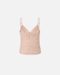 106726A378-Q35 Sleeveless top with a fitted silhouette, featuring thin adjustable lingerie-inspired straps, a front V-neckline, and a back fastening with two tonal buttons that create small cut-outs. The undisputed star of the style, however, is the detailing: an ultra-light lace that adorns the entire surface with sophisticated floral motifs and trims the outer edge of the front neckline. The garment, which is lined to make it even more comfortable to wear, also features delicate drapes to enhance the figure and a straight neckline at the back that leaves the upper part of the back open: wear it with a miniskirt for a bolder look, or pair it with a pair of trousers and a blazer for a refined outfit with a hint of sensuality. - FRAGOLA TOP COMPOSITION 1° Outside Fabric: POLYAMIDE 80% POLYAMMIDE 80% ELASTANE 20% - Lining: POLYAMMIDE 100% POLYAMIDE 100% - Accessory: POLYAMMIDE 100% POLYAMIDE 100% MEASURES W: 0.11 g