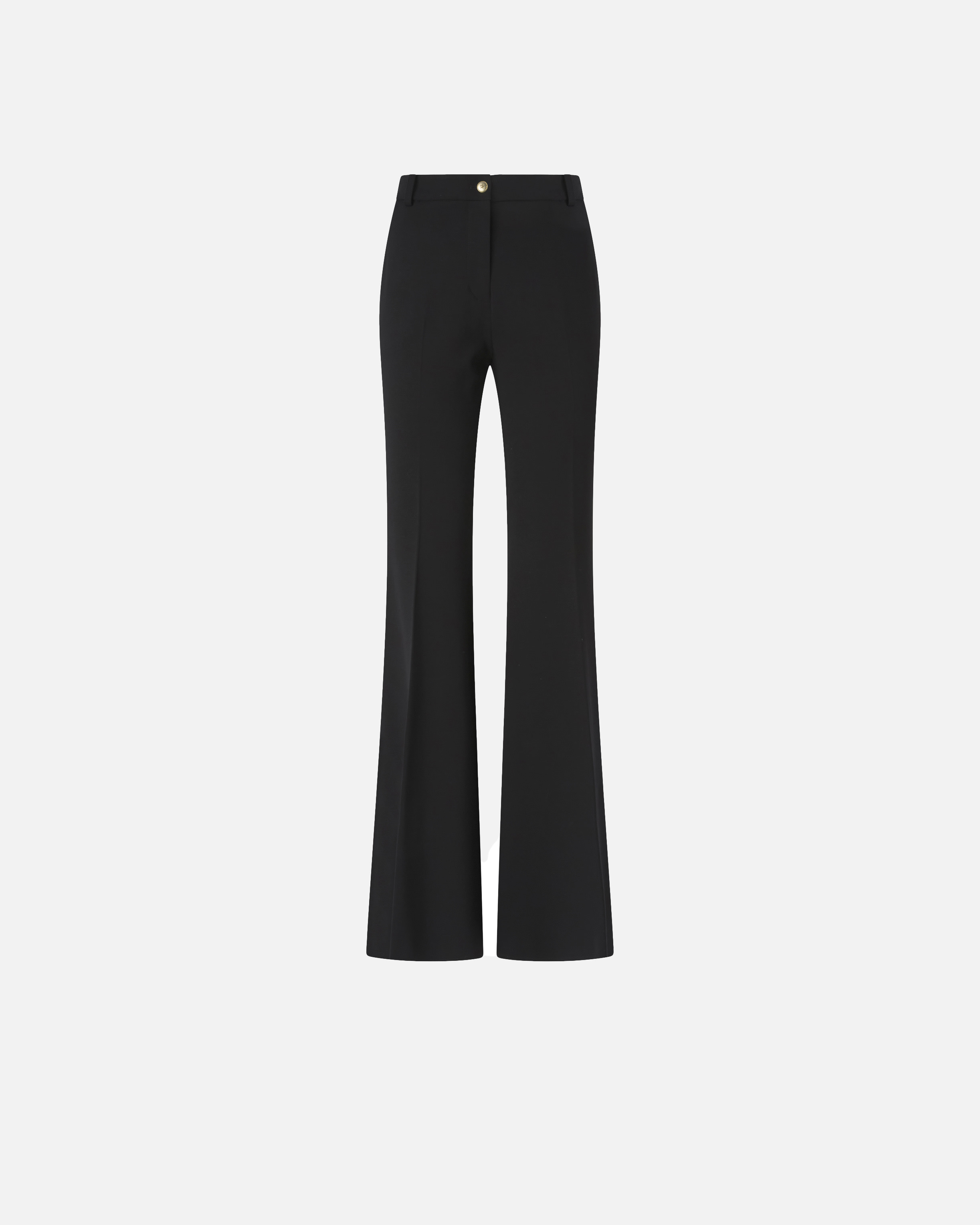PASTA TROUSERS − 105705A24CZ99 Flare-fit trousers in technical, full Milano-worked, stretchy viscose fabric. This high-waisted style, which is slim-fitting down to the middle of the leg before flaring out towards the hem, is complete with belt loops, welt pockets on the back and a front fastening with a star-decorated metal button and covered zip. COMPOSITION Outside Fabric: VISCOSE 67% POLYAMMIDE 28% POLYAMIDE 28% ELASTANE 5% - Lining: ACETATE 67% POLYESTER 33%