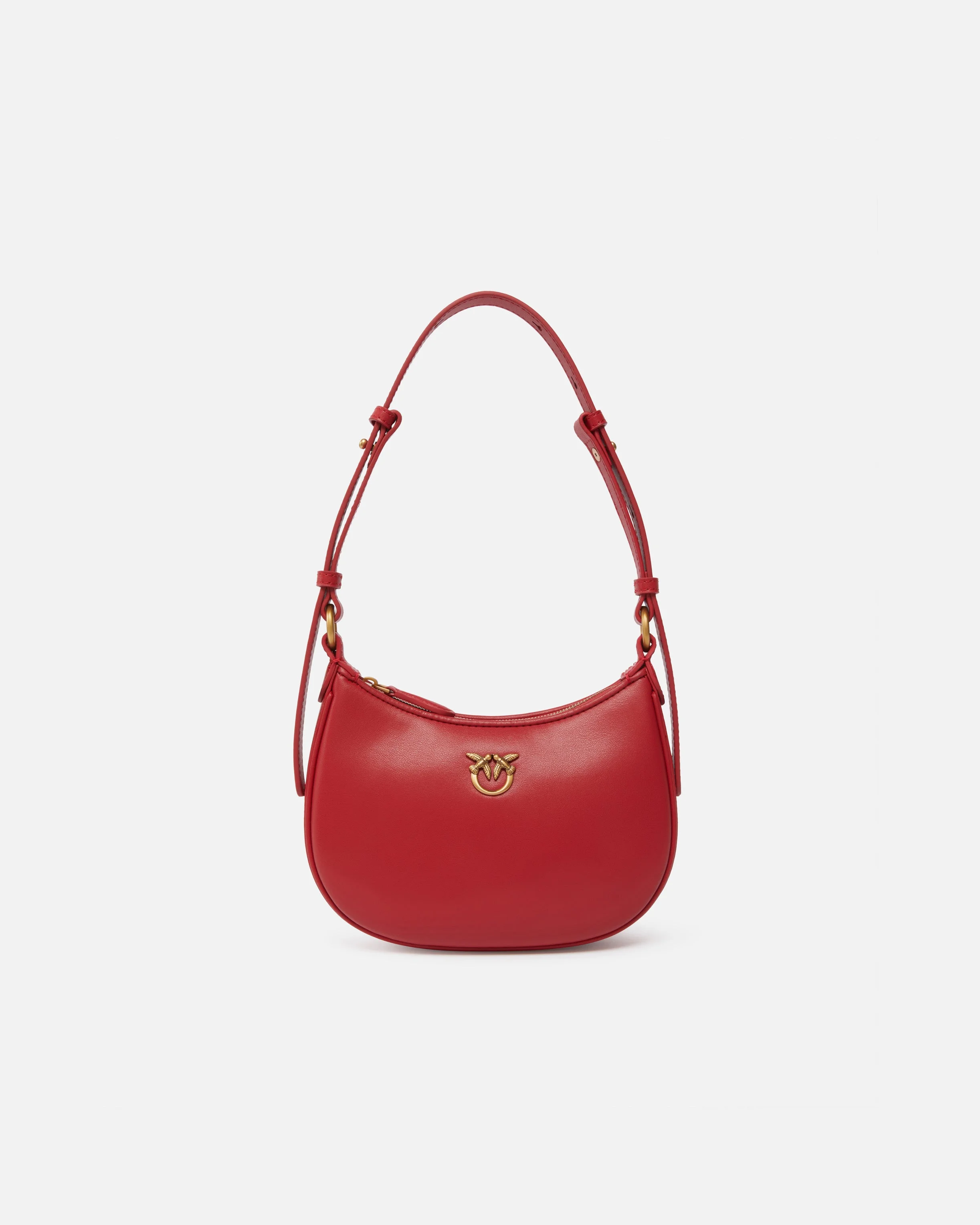 103538A0F1-R30Q Half Moon baby shoulder bag in soft, silky leather with smooth texture and custom mini metal Love Birds Diamond Cut plaque. The bag features an adjustable leather strap for shoulder wear or hand carry and features suede-effect fabric lining and a zipped inner pocket. Activate your PINKO bag: verify the authenticity of your product and access a personalised experience by scanning the Love Birds embroidery on the back of the bag with your smartphone! COMPOSITION Leather: CALF LEATHER 100% CALFSKIN LEATHER 100% - Lining: COTTON 100% - Accessory: Zinc 100% MEASURES W: 0.27 g H: 12.0 cm W: 5.0 cm L: 18.0 cm